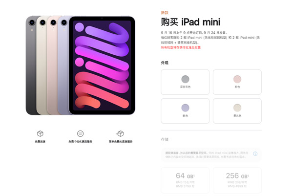 苹果2021秋季新品发布会正式落幕,但是此次最大升级的产品并不是小刘海的iPhone 13,而是第六代iPad mini,这也是该产品线有史以来最大升级。 第六代iPad mini最为明显的改进就是外观方面,其整体引入了iPad Air 4的设计语言,首次采用全面屏方案,正面配备一块8.3 英寸Liquid 视网膜显示屏,分辨率为2266x1488,326 ppi,并且支持原彩显示、Apple Pencil二代。 由于配备了一块边框超窄的全面屏,其正面的实体Home键也首次取消,变更为Touch ID电源键二合一的侧边指纹。 核心方面,第六代iPad mini搭载最新的A15处理器,台积电5nm打造,集成多达150亿个晶体管,6核心CPU号称对比竞品性能领先50%,5核心GPU号称性能领先竞品30%,同时还支持5G网络,可放置nano SIM卡。 影像方面,第六代iPad mini依然为后置单摄,配备了一颗1200万像素广角摄像头,拥有ƒ/1.8光圈,最高可达5倍数码变焦,5P镜头,支持Focus Pixels自动对焦;正面配备一颗1200万像素超广角摄像头,122°视角,拥有ƒ/2.4光圈,支持镜头畸变校正。 此次升级还有一个重大亮点就是支持了立体声扬声器 (横向),能带来更好的影音体验。 续航方面,第六代iPad mini内置19.3瓦时锂聚合物充电电池,使用无线局域网浏览网页,或观看视频,使用时间最长可达10小时,充电接口为USB-C。 第六代iPad mini这次提供了深空灰色、粉色、紫色、星光色四款配色可选,存储容量提供64GB、256GB两种可选,无线局域网版本售价为3799元起,蜂窝版本售价为4999元起,将于9月16日上午9点开订,9月24日发售。 |