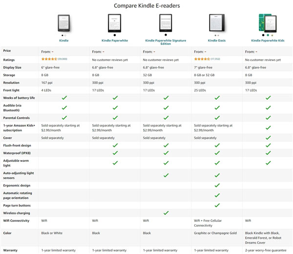本周,亚马逊发布全新一代Kindle Paperwhite电子书阅读器,国内定价1068元,比KW4贵了70元,即日起已经开始接受预订。 算下来这应该是系列第五代Kindle Paperwhite了(第11代Kindle),主要升级点话包括更大6.8英寸墨水屏(300PPI)、冷暖色调阅读灯、翻页速度更快、支持双频Wi-Fi、USB-C接口等。 基本参数上,还有IPX8防水、8GB机身存储、8.2mm/206g、进一步优化的续航表现等。 虽然国行比较低调,但在美亚官网,新KW的标称续航数据是10周、翻页速度加快了20%。充电方面,电脑USB大约5小时、9W PD头只需2.5小时。 在美亚,还有支持Qi无线充电、32GB存储、加入自动光感的签名版,定价190美元,国行可能未来引进。 |