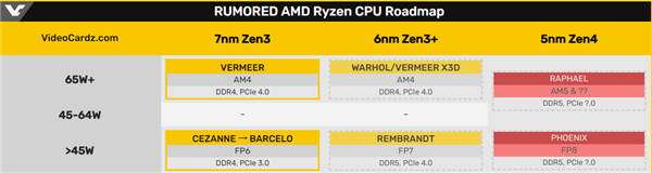 Zen3之后,AMD的处理器产品策略变得扑朔迷离起来。 就目前的爆料来看,明年1月CES上AMD将推出基于6nm Zen3+的Rembrandt(伦勃朗)APU产品,桌面端则是Warhol(沃霍尔)和Vermeer 3D缓存版,前者支持DDR5内存,后者则是AM4接口、且仍旧是DDR4。 显然,这样的产品力在面对12代酷睿时略显不足,别急,还有呢。 据称AMD锐龙7000系列处理器基于5nm Zen4架构,其中桌面端代号Raphael(拉斐尔),笔记本移动端代号Phoenix。 最新消息称,Phoenix标压产品最高配置16核心,之所以如此激进,显然是为Intel Alder Lake而来。在移动端,Alder Lake规划了55W标压的产品,最高同样是16核,当然,Intel这便是8大核+8小核的设计。 对于Alder Lake,Intel的性能承诺非常振奋,CPU提升20%、GPU提升100%、AI性能提升5倍。 大战,一触即发…… |