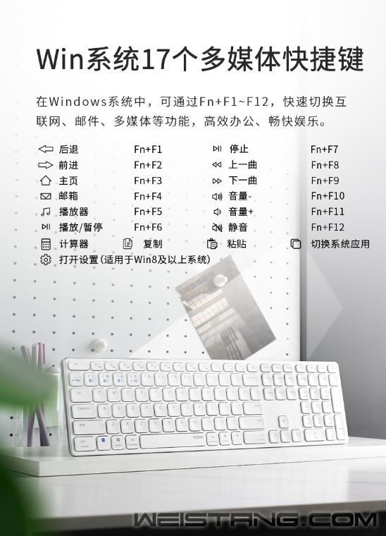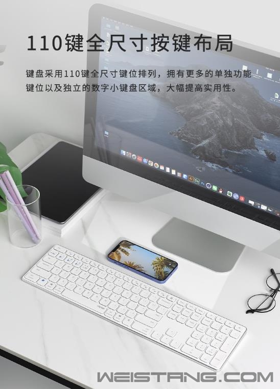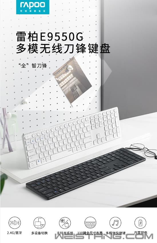 领军国产外设品牌的实力大厂上市企业Rapoo雷柏,推出了雷柏E9550G多模无线刀锋键盘,专为商务办公人群打造。2.4G/蓝牙,多设备切换,繁杂工作从容应对。兼容Windows/MAC OS双系统,多媒体快捷键,工作娱乐皆方便。铝合金边框与底板,坚如磐石。110键全尺寸布局,内置锂电,出差必备。接下来让我们来看一下雷柏E9550G多模无线刀锋键盘的精彩之处吧。 E9550G刀锋键盘提供蓝牙5.0/3.0和无线2.4G三种智能连接模式,传输稳定可靠,使用手机亦能高效办公。 最多同时可连接4台设备,无论手机、笔记本、台式或是平板电脑,都能快速切换,在其中自由穿梭,繁杂工作亦能从容应对,化身职场达人! 打破束缚,E9550G兼容Windows和MAC OS系统,Fn+~切换,从容应对工作和娱乐。 采取经典剪刀脚的结构,巧克力按键,精选硅胶颗粒,巧克力独立键帽,各种角度按键都能均匀受力,回弹更迅速,敲击轻盈如水,机身采用铝合金材质的一体式底壳,配合略带磨砂的面板,有着非常出色的质感表现。金属边角部分细节处理到位,倒角工艺也进一步提升了键盘的视觉观感和手感表现,坚固耐用的同时,整体典雅的气质令人一见倾心。 键盘采用110键全尺寸键位排列,拥有更低的单独功能键位以及独立的数字小键盘区域,大幅提高实用性。内置300mAh可充电锂电池,配合雷柏低功耗芯片与节能省电技术,续航最高可达96小时,通过UBS-C接口,支持边充边用,2个小时即可充满。 在Windows系统中,通过Fn+F1~F12,以及键盘上相应的快捷按键,可快速切换互联网、音量调节、邮件、多媒体等功能,高效办公、畅快娱乐。 雷柏E9550G无线刀锋键盘的110键位全尺寸布局适合全场景适用,更加方便白领处理繁忙工作。它既可以多平台兼容,又可以多平台共用,外形精美、且续航能力强大,满足白领用户的众多需求。 |