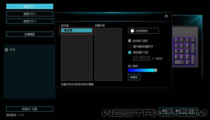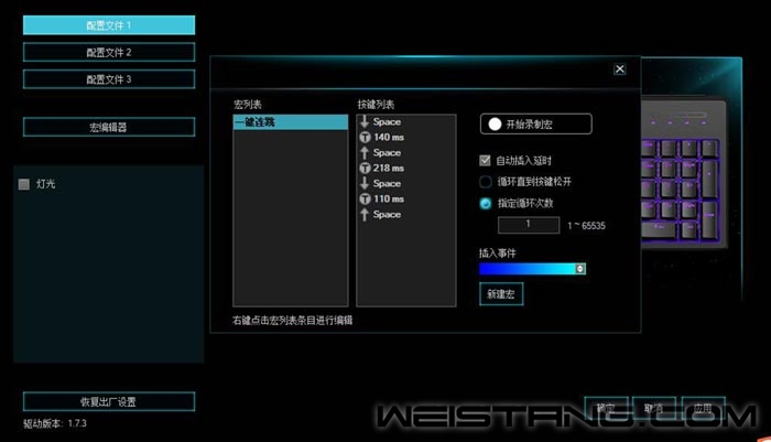 《永劫无间》是由24 Entertainment制作发行的一款动作游戏新作。在域外之地聚窟州,神秘的力量等待着来自各大文明的武者。玩家需要运用丰富的武器战胜敌人,而世界的真相将向最终的胜者展开。而连跳作为游戏中必不可少的技能,能够迅速的通过高障碍物掩护自己躲避敌人的打击以及给予敌人出其不意的打击,增强走位的灵活性。今天笔者就使用雷柏V808RGB背光游戏机械键盘强大的宏定义玩出一键连跳的灵活闪避。 宏怎么设置去完成奔走的动作,需要将默认的Space键(跳跃)连按两下,这样就能触发连跳的动作。宏定义可以让你有效的闪避敌人给你的伤害,以及给予敌人出其不意的打击,增强走位的灵活性。下面就为大家讲解如何通过雷柏V808RGB的宏定义一键玩转连跳。 步骤一:打开驱动,选中雷柏V808RGB的宏编辑,点击“宏编辑器”,再点击右下角的“新建宏”,命名为“一键连跳”。 步骤二:将“一键连跳”的一系列操作进行录制,点击界面开始录制宏,并依次输入Space Space,点击“停止录制”,即完成了一组宏命令设置。 步骤三:设置好一键连跳的一系列动作之后,回到主页面,以T键为例,在设置页面,点击宏,选择刚才设置好的“一键连跳”命令,点击“确定”后,点击“应用”,即可使用。 步骤四:设置完成后,就可以开启你的奔走闪现之旅,只要经过合理的设置,雷柏V808RGB让你在游戏中可以轻松跨过高大障碍物,既可以躲避敌人的追袭,也可以给敌人突入袭来的攻击。 RAPOO雷柏,领军国产外设品牌,实力大厂上市企业发布的V808RGB幻彩背光游戏机械键盘,樱桃Cherry MX机械轴的加入,提供了黑、青、茶、红四轴可选,1680万色幻彩RGB背光系统,游戏+办公模式19种灯光模式,并支持单键背光可独立设置,双色注塑键帽,104键全键无冲突设计,键线分离,板载内存等诸多亮点集一身的雷柏V808RGB,强大的驱动软件也让键盘的可玩性获得更大的提高,售价仅为499元,相信它一定会成为你首选的游戏利器,给你畅快的游戏操作体验。 |