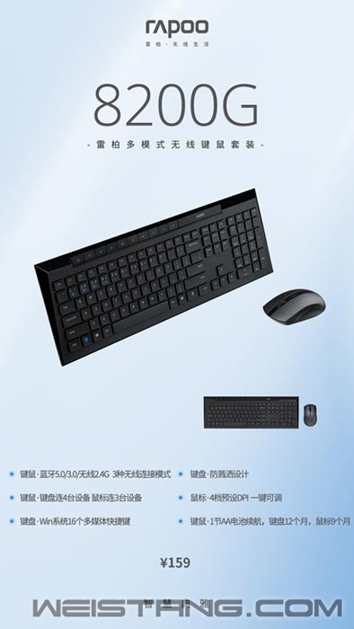 随着工作节奏越来越快,对于一些商务人群来说,办公外设成了不可或缺的物件,一套好的外设,可以带来工作效率上的提升,近日,领军国产外设品牌,实力大厂上市企业Rapoo雷柏推出了8200G多模式无线键鼠套装,“键”指商务办公人群。蓝牙5.0/3.0和无线2.4G搭配多设备切换,繁杂工作轻松应对。上盖均采用磨砂表面处理工艺,质感细腻。自主研发的省电程序,配合低功耗芯片,使得在各使用一节AA电池的情况下,键盘达到12个月,鼠标达到9个月的长时间续航,免去频繁更换电池的麻烦,保持能量满满,心无旁骛持续办公。 多措并举,持之以恒~键鼠 多管齐下,事半功倍。8200G提供蓝牙5.0/3.0和无线2.4G三种职能连接模式,传输稳定可靠,适配设备广泛。键盘支持同时连接4台设备,鼠标支持同时连接3台设备,可在各个设备间快速切换,科技感十足,纵享便利,面对众多繁杂工作内容,亦能轻松自如操作,事半功倍。搭配雷柏自主研发省电程序,辅以低功耗芯片,使得在各使用一节AA电池的情况下,键盘达到12个月,鼠标达到9个月的长时间续航,保持能量满满,持久办公,避免需要频繁更换电池,身处因缺乏电量耽误工作的窘迫。 轻盈时尚,独具匠心~键盘 全尺寸键位布局,带有数字小键盘,办公操作更加得心应手,采用巧克力独立键帽,精选的硅胶颗粒,使得按键受力更加均匀,回弹更迅速,长时间码字也能持续舒适。好用亦要好看,磨砂的工艺上盖,采用钢琴烤漆包边,视觉上菱角分明,充满着硬朗且典雅的质感。再忙也要适当放松一下调整状态,键盘自带了Win系统16个多媒体快捷键,音乐、电影、邮件、互联网等等一键调节,在工作之余也能畅快娱乐,工作娱乐两不误。键盘有个很贴心的防溅洒设计,在办公时难免会有一些小意外发生,好比不小心打翻了水杯,即使意外将液体洒入键盘,液体也能自然流出,不耽误工作的同时还尽心呵护了键盘。 四档可调,所向披靡~鼠标 有时候避免不了需要外出办公,那么也会遇到忘带鼠标垫的尴尬瞬间,这时候一款可以在多种不同表面材质上都能使用的鼠标尤为重要。鼠标有着最高1600DPI高精度引擎,600/1000/1300/1600 4档可调节,快速找到最适合自己的灵敏度,在皮革丶布匹丶纸张等表面亦能快速移动,准确不丢帧。搭配静音微动按键,有效的减少了使用噪音,提供一个宁静的工作环境,让你无论身处何处,都能随时随地的进入工作状态。 面对繁杂的工作,全心投入的商务人士们最后往往精疲力尽,8200G有着蓝牙5.0/3.0/无线2.4G三种智能连接模式,搭配多设备切换。持久续航,轻松应对繁杂工作,键盘16个多媒体快捷按键搭配巧克力按键,敲击更顺畅,回弹更迅速,工作娱乐两不误。鼠标4档可切换的高精度引擎,能在多介质表面适用。正是这些细节上的贴心设计,在帮助提升工作效率的同时,还能带来悉心舒适的使用体验。雷柏8200G多模式无线键鼠套装,官方指导价159元,现已上市! |