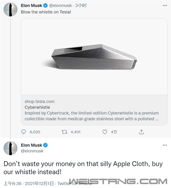 前段时间,苹果上架145元的天价擦屏布,引起了不少网友关注与热议,而特斯拉CEO马斯克也对此搞起了事情。 今日,特斯拉上架了一款CyberTruck皮卡造型的哨子,售价50美元(约合人民币318元)一个。 此外,特斯拉还不忘嘲讽苹果一番:“不要在愚蠢的苹果抛光布上花钱,快来买特斯拉哨子吧!” 按照特斯拉官方说法,此哨子名为Cyberwhistle,设计受Cybertruck皮卡的启发,是一款优质的收藏品,由经过抛光处理的医用级不锈钢制成。 看到一个哨子卖到300多元,不少网友吐槽:“比苹果还会收智商税”,但是让人想不到的是,这款哨子已经被抢购一空,后知后觉的网友想交智商税也没有途径。 在你看来,这个50美元的哨子,你会考虑吗? 另外,不能排除的是,不少网友想要把这个哨子当做理财产品抢购。此前,特斯拉上架龙舌兰玻璃酒瓶,国内售价779元,限量1500个。 因为货源不多,酒瓶上线就被抢购一空,随后在二手交易平台上,玻璃酒瓶甚至被炒到了近万元的高价,不过成交价往往也溢价2-5倍不等。 因而,有理由预计,这款特斯拉皮卡口哨,很快就会出现在二手交易平台上,二手价会溢价多少呢?我们拭目以待。 |