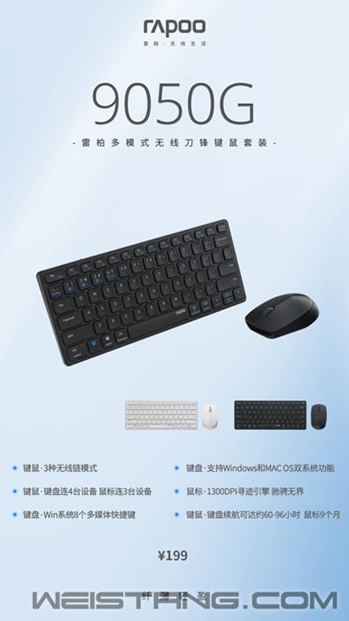 能力的跃升来自去浮留精的专注,理想的渐进源于生活的累积。以公里为单位的移动往复,即将环绕赤道一周的通勤里程,见证了自校园迈出后逐步成熟的你;两三平米的办公空间,各式文件塞满不过两平的桌面,承载了你为生活灌注的精力与热情;落地玻璃的咖啡屋、原木堆砌的图书馆中,键鼠上难以计数的起落、点击与输入,将语言转化成文字抵达另一端的屏幕,遍布各处的浏览印迹,记录生活点滴灵感迸发。 78键刀锋便携,饱满弧线人体工学,三种连接模式多场景兼容。化繁为简纤巧以对,为每一个逆水争流的理想减重,老牌实力大厂,外设领军品牌,雷柏9050G多模式无线刀锋键鼠套装上市! 去浮--刀锋廓形,简约便携 里程的累积、空间的拥杂、事务的增加,视觉的熵增以精力的消耗作为代价推进工作,无谓的视觉空耗如何以轻盈且平衡的设计进行中和,将专注置于第一优先级。简约的盛大,收敛的肆意,当刀锋系列的强有力辨识度迈入庸常生活,浮躁在此被打破,刀锋带来的惊喜得到最大程度的展现。 将冗长的言语凝练重组——简而不同。最薄5mm,细腻平整的键盘结构,铝合边框与背面绽放金属的冲击,78键圆角矩形轻巧填充;亲肤的材质依据曲直分割附着于鼠标表面,再将橡胶防滑孔融入两侧,展现设计与功能的巧妙平衡。不同材料间的组合于搭配用统一的视觉体验进行统一,清爽入眼是我们对视觉感受的最优答卷。 9050G将磨砂覆盖鼠标表面,轻盈贴手是我们对长时间握持体验充分的保障;圆角矩形按键带来适度凹陷,为每一句文字的触击提供精准的定位。产品设计释放贴和感知的温度,秉持“轻松、便携、舒适”的设计理念,将简约温柔的精英风格设计作为功能性使用的坚实基础。 留精--多模切换,高效办公 技能的增加扩展事务消解的途径,不可避免带来选择的精力成本,如何在功能与实用平衡中寻觅最优点,将效率作为生产力第一优先级,以“多模”保持了对“人性化体验”的高度关注,赋能用户更多高效生活办公体验。 将繁杂的内容去芜存菁——合并入简。让连接更加无感,9050G多模无线刀锋键鼠套装,加入蓝牙5.0/3.0、无线2.4G三种连接模式,身处多干扰源场合也能稳定连接,键盘支持4台设备切换,鼠标支持3台设备切换,平板、笔记本、手机、电脑等多设备切换轻巧快速,时刻畅连,为移动办公体验再次加码。 让多媒体功能更快速触达,9050G键盘在采用简约布局的同时,兼容Wins和Mac OS双系统,保持功能上的易用性,Wins系统下12个多媒体快捷键,释放移动办公的自由洒脱与舒适。 刀锋键盘剪刀脚结构与巧克力按键的采用,为每一次按压带来均匀受力、回弹迅速的轻盈感受,同时结合鼠标静音微动的低噪反馈,呈现静谧敏捷的办公体验。最长96小时键盘使用时长搭配最多9个月鼠标使用续航,告别续航焦虑,让使用更加持久,减少移动办公碎片化使用感受。 标志性的金属与质感作为整个系列的起始设计,完美地融合了实用性和高级感,短巧设计,率性自如,用最舒适精简的搭配组成雷柏9050G多模无线刀锋键鼠套装,在结合功能性与装饰性的同时,也承载着情绪的表达,移动办公的空间里,它能容纳你的能量,浏览、滑动、沉思、让想象飞翔,让记录沉淀。 |