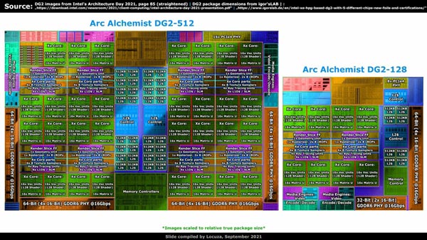 上周,爆料好手MLID晒出了Intel ARC显卡的裸Die图片,包括大一号的DG2 SOC1(512 EU)和小一号的DG2 SOC2(128 EU)。 随后,大神Locunza_ 估算出了GPU面积,其中DG2 SOC1大致是396平方毫米。 这就有趣了,单就GPU面积来看,和NVIDIA GA104简直如出一辙,GA104目前用于NVIDIA的RTX 3060 Ti/3070/3070 Ti几款显卡。 耐人寻味的地方在于,Intel ARC显卡最大号(512 EU)传言性能上对标的就是RTX 3070 TI/3070。 考虑到ARC显卡采用是比NVIDIA Ampere相对更先进的6nm制程,也就是同样面积下能容纳更多晶体管,即便Intel的核心单元图形效率不仅CUDA,至少也有能靠规模弥补上来的可能。 在刚结束的TGA大会上,Intel再度确认ARC独显会在一季度登场,而且是覆盖笔记本、桌面和工作站的“宇宙级”定位。 |