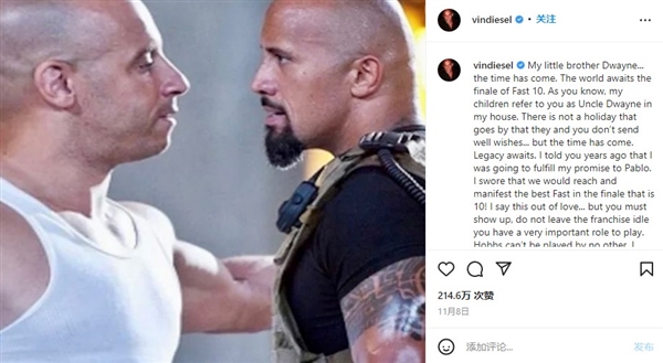 范·迪塞尔上个月在社交平台发声,公开邀请巨石强森回归速激10,宣称自家孩子管强森叫叔叔,大家都是伐木累成员,不要违逆已故成员巴勃罗(保罗·沃克)的遗愿,全球观众都等着看速激大结局呐! 强森于2011年加盟速激,扮演外交安全局特工卢卡斯·霍布斯,连续参演四部迪塞尔领衔的伐木累,到速激九实在是伐累了,辞演速激九与另一个光头郭达斯坦去拍速激衍生片《速度与激情:特别行动》。 当时有传言指巨石与迪塞尔关系不和,两人在片场起了冲突。 强森近日接受采访时,对迪塞尔的邀请作出回应,表示几个月前两人私下里已达成共识,为何现在要旧事重提?不仅公开造舆论,还利用孩子与死者逼宫,自己坚决不上当: “我礼貌又坚决地跟迪塞尔说过,我不会再来演这个系列,我祝愿他们一直顺风顺水演下去,但没我什么事了”,强森称,“迪塞尔喜欢摆布人,这个所谓的邀请就是明证,利用孩子与已故的保罗·沃克(衬托对方无情无义),我不喜欢这样,不要把他们扯进来,我俩几个月前就说过这事并达成共识。” 业内人士表示速激系列即将终结,完结篇分为上下两部分,速激十为上半部分,定档2023年4月7号。除迪塞尔外,速激九原班人马有望回归,其中包括导演林诣彬,他将重执速激十导筒。 |