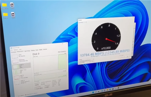 除了首发DDR5内存,Intel的12代酷睿Alder Lake还首发支持了PCIe 5.0技术,单通道速率32GT/s,SSD硬盘速度可达16GB/s左右,相比现在的PCIe 4.0硬盘翻倍。 不过PCIe 5.0尴尬的是现在没多少产品,Alder Lake首发评测的时候几乎没有哪家媒体做过PCIe 5.0性能测试,Intel自己的数据都不多,首席性能策略师Ryan Shrout日前才演示了PCIe 5.0硬盘在Alder Lake下的性能。 他使用的硬盘是三星前几天才发布的企业级PM1743硬盘,容量1.92TB起,最大15.36TB,PM1743顺序读取可达13000MBs/s、顺序写入6600MB/s,随机读取2500K IOPS、随机写入250K IOPS。 从Intel的跑分来看,在Alder Lake平台上,PM1743的速度轻松跑到了13GB/s以上,最高接近14GB/s,差不多是PCIe 5.0的上限了,而对比的西数黑盘速度也就是7GB/s左右。 12代酷睿的PCIe 5.0实际上虽然是给显卡用的,PCH南桥芯片还没支持PCIe 5.0,但主板厂商会把PCIe 5.0转换为M.2插槽,现在来看发挥PCIe 5.0硬盘性能是没问题的。 对PC用户来说,现在主要的问题还是没有什么消费级的PCIe 5.0硬盘,三星、铠侠等厂商推出的还是企业级的,过几天的CES 2022展会上可能会看到更多消费级PCIe 5.0硬盘。 |
