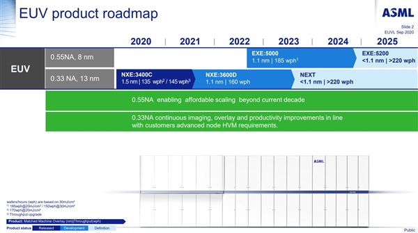 1月19日最新消息,Intel宣布第一个下单订购了ASML TWINSCAN EXE:5200光刻机。 TWINSCAN EXE:5200是ASML的高NA(数值孔径)EUV光刻机,其吞吐量超每小时220片晶圆(wph)。 从路线图来看,EXE:5200预计最快2024年底投入使用,2025年开始大规模应用于先进芯片的生产。 事实上,4年前,ASML的第一代高NA(0.55 NA)光刻机EXE:5000,Intel就是第一个下单的公司。不过当前的7nm、5nm芯片还并非是其生产,而是0.33NA EUV光刻机。 和0.33NA光刻机相比,0.55NA的分辨率从13nm升级到8nm,可以更快更好地曝光更复杂的集成电路图案,突破0.33NA单次构图32nm到30nm间距的极限。 外界预计,第一代高NA光刻机EXE:5000会率先用于3nm节点,至于EXE:5200,按照Intel的制程路线图,2025年至少是20A或者18A,也就是5nm和5nm+。 此前,ASML发言人曾对媒体透露,更高的光刻分辨率将允许芯片缩小1.7倍、同时密度增加2.9倍。未来比3nm更先进的工艺,将极度依赖高NA EUV光刻机。 最后不得不说,Intel能抢到第一单,除了和ASML一致紧密合作外,当然也是因为“钞能力”,Gartner分析师Alan Priestley称,0.55NA下一代EUV光刻机单价将翻番到3亿美元(约合19亿元人民币)。 |