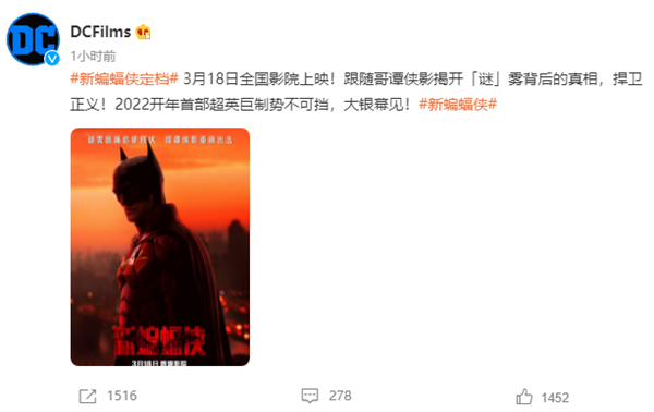 今天,DCFilms官方宣布,电影《新蝙蝠侠》国内院线正式定档3月18日上映,成为2022年上映的首部超级英雄电影。 《新蝙蝠侠》是马特·里夫斯执导的超级英雄电影,由罗伯特·帕丁森、杰弗里·怀特、佐伊·克拉维兹、保罗·达诺等联袂主演,讲述了蝙蝠侠深入哥谭市地下世界,调查名流被谋杀案真相的故事。 本片的导演马特·里夫斯是一名资深电影导演,曾执导《猩球崛起2》、《猩球崛起3》两部科幻题材电影,并凭此两次入围土星奖最佳导演奖。 在与DC的合作上,马特·里夫斯也有一定的经验,2020年与2021年的DC粉丝嘉年华全部由他担任导演,对DC粉丝的需求有清晰的了解。 演员方面,在《新蝙蝠侠》中,罗伯特·帕丁森将成为新的蝙蝠侠饰演者,他曾在科幻电影《信条》中饰演尼尔一角,演技出色。 作为《蝙蝠侠》系列电影的重启之作,《新蝙蝠侠》究竟能够有怎样的表现,又是否能够展现出与诺兰三部曲不同的气质,仍不得而知。 |