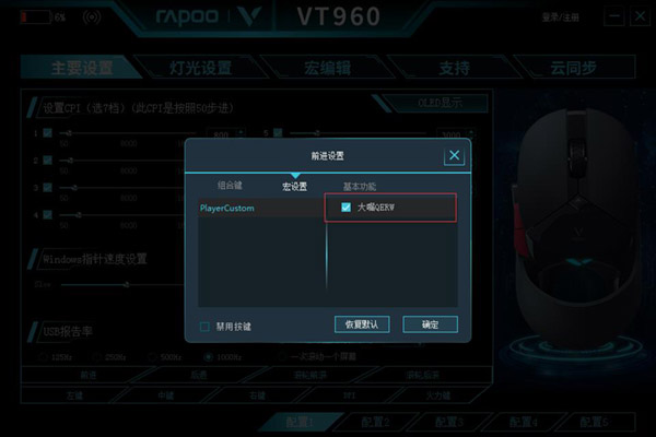 LOL大嘴一秒五喷 雷柏VT960屏显双模无线RGB游戏鼠标宏定义驱动设置 深渊巨口(大嘴)作为英雄联盟里的后期英雄,发育起来无论是AD还是AP都非常强势,是团队后期的保障。新版本的到来,大嘴的技能有所变化,其中改动最大的是W技能,100%的攻速加成让大嘴成为一个少有的可以站撸的ADC。此外,英雄以及天赋改动非常大,笔者将使用雷柏VT960屏显双模无线RGB电竞游戏鼠标宏定义功能教你玩出一秒五喷的移动大炮。 首先我们先看看新赛季大嘴推荐的符文天赋: 点出致命节奏搭配W技能来突破攻速限制,达到一秒五喷,启迪里的闪现网和未来市场让大嘴能有更好的输出空间和发展速率。 线上玩法:熟悉了新赛季大嘴的天赋和符文之后,我们再来看看他的玩法,新版本更新后,对于大嘴的变化相较其他英雄来说变化不大,主要还是要保证前期的发育,线上消耗QEW对点,6级之后R消耗,新版本R技能活体大炮基础伤害下降,不再对英雄造成额外伤害,对25-50%血量的英雄目标造成双倍伤害,对25%以下血量英雄造成3倍伤害。 团战玩法:团战的时候一定要注意走位,不要被敌方的切入型刺客秒掉,远距离用R先消耗,由于大嘴没有位移技能,团战时很容易被切,因此最好是等闪现在手的时候开团,利用E技能减速,走A,秒掉对面切入的刺客,大嘴W技能的高攻速对敌方前排威胁很大,团战开始之前可先消耗对面前排。 熟悉大嘴的基本玩法之后,下面就为大家讲解如何通过雷柏VT960一键玩大嘴。相信许多的玩家有时候会因为手速不够快而没法完成复杂的连招,我们可以通过宏定义的设置, 将完美解决您的手速问题,让你一键就能发出大嘴的QERW连招,让你在游戏中快人一步,离胜利更进一步。 步骤一:我们以“大嘴”为例,设置一个宏命令。点击“新建”,并将"新建宏"重命名为"大嘴QERW"。 步骤二:大嘴基本连招——“QERW”,这一系列动作命令设置为一个宏命令。点击界面右侧的“开始录制”,依次输入QERW,点击“停止录制”。即完成了一组宏命令设置。 步骤三:设置好大嘴连招之后,回到主要设置界面,以“前进键”为例,在设置页面,点击宏编辑,选择刚才设置好的"大嘴QERW "命令,点击"确定"后,即可使用。 步骤四:设置完成后,便可在《英雄联盟》中,可以通过点击VT960的前进键来一键使用大嘴的连招进行线上对拼了,线上单杀、留人、逃生只需通过一个键,尽享一秒五喷的输出快感。 老牌实力大厂,国产外设领军品牌雷柏(RAPOO)发布的VT960屏显双模无线RGB游戏鼠标,使用未来科技范的创意镂空超跑造型,拥有1680万色RGB灯光系统,客制化的OLED显示屏,随时知悉战鼠的一举一动。搭载原相3389的专业传感器,可在50-16000DPI中以50DPI为单位逐级微调,5000万次的欧姆龙清脆手感微动开关,性能和手感得到极大提升;Ti德州仪器的无线方案,能在无线模式下亦能获得媲美专线般的传输效能和稳定性。板载内存、编织线材、镀金USB接口、特氟龙材质脚垫,优秀的工业设计与表面材质保证了长时间游戏的舒适度。仅售399元,相信它一定会成为你首选的游戏利器,给你畅快的游戏操作体验。 |