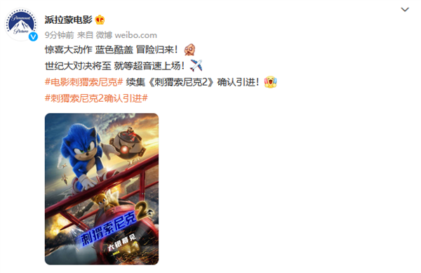 今日(4月14日),派拉蒙影业官方微博宣布游改电影《刺猬索尼克2》确定引进,档期待定,杰夫·福勒回归执导,本·施瓦茨、金·凯瑞、詹姆斯·麦斯登等出演,影片已于4月8日在北美上映。 《刺猬索尼克2》讲述的故事是,在Green Hill定居后,索尼克急于证明自己有成为真正英雄的能力。 当Robotnik博士回来的时候,他带了一个新的伙伴——Knuckles,去寻找一种具有摧毁文明力量的绿宝石。索尼克与他自己的同伴泰鲁斯等一起踏上了一个环球旅行,以阻止它落入坏人之手。 PS:经查,本片目前IMDb评分为7.0,总票房已超1.58亿美元(约合10亿元人民币)。 |