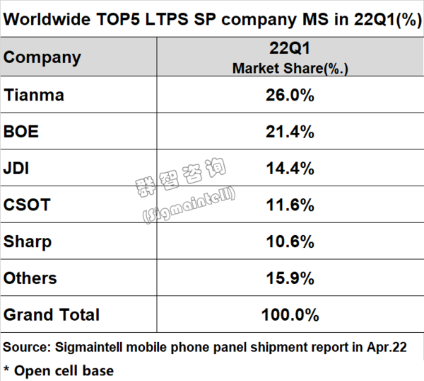 今日,天马微电子官方宣布,在群智咨询(Sigmaintell)发布的2022年一季度全球LTPS LCD智能手机面板出货排名榜单中,天马继续蝉联全球第一。 从该榜单可以看出天马以26.0%的市占比居于首位。作为中国显示面板企业的代表,从2017年第四季度打破国外厂商独霸十几年的垄断以来,天马持续保持该领域冠军。 近年来,天马成功研发了TED In-Cell(单芯片触控)技术、In-Cell 主动笔技术、高PPI VR(虚拟现实)高刷快速响应技术、低蓝光100% DCI-P3技术、mini-LED技术等行业领先的显示解决方案。这些技术是天马领先的关键。 第二名为京东方,市占比为21.4%。此前,京东方发布了2022年第一季度报告,营业收入504.76亿元,同比微增0.40%。 截止2022年一季度末,京东方总资产4570.64亿元,同比增长1.52%。京东方仍持续稳居全球半导体显示产业龙头,并在超高清、高刷新率、电竞显示等领域推出诸多创新产品。 此外,三至五名分别是日本显示(14.4%)、华星光电(11.6%)和夏普(10.6%),其他厂商共计15.9%的份额。 |
