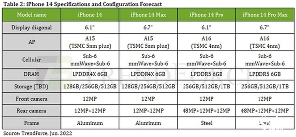 6月3日消息,根据市场调研公司TrendForce的分析,今年秋季将推出的所有四款iPhone 14机型都将配备6GB的内存。 TrendForce还提到,iPhone 14 Pro系列机型将升级到更快、更省电的内存类型,即LPDDR5,而标准的iPhone 14和iPhone 14 Max机型预计将坚持使用LPDDR4X。 如果这一分析被证明是准确的,那么近两年iPhone的内存阵容则包含:iPhone 13 mini:4GB(LPDDR4X)、iPhone 13:4GB(LPDDR4X)、iPhone 13 Pro:6GB(LPDDR4X)、iPhone 13 Pro Max:6GB(LPDDR4X)、iPhone 14:6GB(LPDDR4X)、iPhone 14 Max:6GB(LPDDR4X)、iPhone 14 Pro:6GB(LPDDR5)、iPhone 14 Pro Max:6GB(LPDDR5)。 该报告与天风证券苹果产业链分析师郭明錤分享的信息几乎一致,他也透露所有四款iPhone 14将配备6GB内存,iPhone 14 Pro机型将升级到LPDDR5。 TrendForce还表示,iPhone 14 Pro系列机型将从256GB存储空间起跳,而iPhone 13 Pro机型为128GB。 正如之前传闻的那样,预计iPhone 14 Pro系列机型独有的两项功能是升级的4800万像素后置摄像头以及搭载A16仿生芯片,标准版iPhone 14系列机型将继续使用A15仿生芯片。 除此之外,mini机型将推出历史舞台。相反苹果计划推出6.1英寸的iPhone 14和iPhone 14 Pro机型,以及6.7英寸的iPhone 14 Max和iPhone 14 Pro Max机型。如果没有重大的供应链中断,这四台新手机都将会在苹果9月的新品活动中发布。 不得不说,库克的刀法精准的让人发麻。从采用6GB,LPDDR4X内存的iPhone 13 Pro Max升级到搭载6GB,LPDDR5内存的iPhone 14 Pro Max,读取速度显然是会有一定提升的。 这一个小细节的变化,让iPhone 14和iPhone 14 Max的内存参数和去年的顶级旗舰维持一个水平,但今年的新旗舰iPhone 14 Pro和iPhone 14 Pro Max就又提高了那么一点。 虽然目前还没有确切的消息,但今年的iPhone 14 Pro以及iPhone 14 Pro Max可能在售价上有所变化,取消mini机型后,数字型号(iPhone 14)的价格应该不会变动。 但这需要在数字和数字+Pro型号中间为iPhone 14 Max进行定价,所以iPhone 14 Pro和iPhone 14 Pro Max则需要加价,拉开与基础两款机型的价差。 |