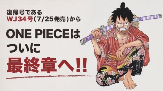 根据最新消息,《海贼王》原作漫画将于7月25日的第1054话步入最终章。 此前,漫画作者尾田荣一郎宣布,从本月底起,海贼王漫画休刊一个月,不过下周的1053话正常连载,具体就是《周刊少年JUMP》30-33期的海贼王漫画休刊,34期恢复连载1054话(发售日为7月25日)。 目前《海贼王》漫画的和之国篇已经到了尾声,路飞战胜了凯多,桃之助也恢复成大人的模样,成为了和之国的新将军。 |