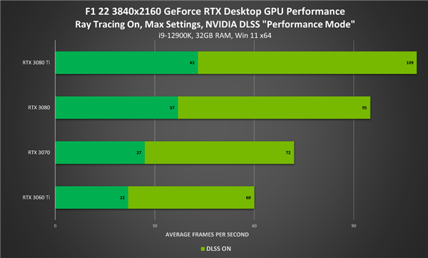 昨晚NVIDIA发布了GTX 1630显卡,同时NVIDIA还发布了GeForce 516.59显卡驱动,这是一款WHQ及Game Ready驱动,不仅首发支持GTX 1630显卡,还带来多款游戏优化,其中F1 22支持了光追和DLSS,游戏性能大涨2倍以上。 Codemaster开发、EA发行的F1 22游戏面向购买了冠军版的玩家发布,一般玩家要等到7月1日才能体验,这次的GeForce 516.59显卡驱动就主要优化了这款游戏,加入了光追结合DLSS支持。 开启DLSS技术之后,游戏性能有了惊人的提升,根据NVIDIA官方公布的测试结果,RTX 3080 Ti在4K+光追+最高画质下,原本性能也只有43fps,开启DLSS后可以达到109fps,其他游戏也有大幅提升,RTX 3060 Ti显卡都可以维持4K 60fps性能,提升2倍或者更高。 除了大幅优化F1 22游戏之外,GeForce 516.59显卡驱动还为Loopmancer、Monster Hunter Rise & Monster Hunter Rise: Sunbreak等游戏提供了优化。 此外,NVIDIA的GeForce Experience软件也支持了下列游戏的设置优化: Hydroneer LEAP Poppy Playtime Propnight The Cycle: Frontier |