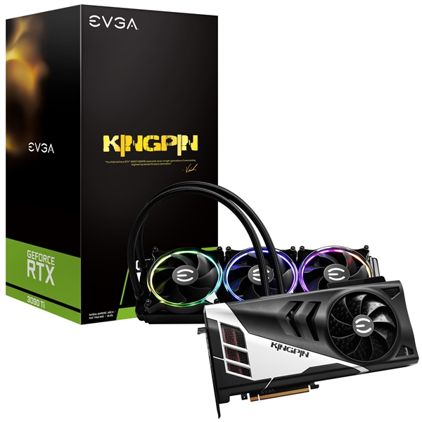 官宣整整三个月后,EVGA终于把卡皇RTX 3090 Ti KINGPIN摆上了货架,要价高达2499.99美元,约合人民币1.67万元。 该卡与超频高手Vince Lucido联合定制,专门面向超频玩家和极限发烧友,采用混合式散热,自带一个风扇,同时外接360mm三风扇水冷排。 内部为14层PCB电路板,自带电压测量点,集成三组BIOS,另外还有一个OLED监视屏,可显示电压、温度、频率等实时信息,还可以自定义图片。 核心加速频率1950MHz,显存搭配384-bit 24GB GDDR6X,频率还是21GHz。 供电接口是两个PCIe 5.0 16针,理论供电能力可达1200W,为此附送1600W功率的SuperNOVA电源,但这个电源并没有16针供电头,因此附送PowerLink 52u转接器,可外接六条8针电源线,转成两个16针供电,还好电源有多达9个8针供电头。 就在日前,EVGA还发布过一个单独的转接器PowerLink 41S,功能类似,但还带有ARGB高级信仰灯,售价59.99美元,约合人民币400元。 |