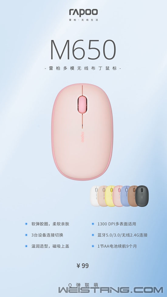 吸引我们眼球的,并非只有华贵之物。别致的事物,常常有独特的能力抓住我们的目光,在它们的身上游离、停留。不用在春天也能感受到的缤纷,不会过时的配色,给我们带来非季节性的欢喜。香芋紫,咖啡棕,柠檬黄,奶油白,奶茶色,蜜桃粉,芝麻灰,7种颜色,轻便小巧,满足我们对甜品的所有想象。 美观与实用都被兼顾,无论你喜欢舒适极简或活泼萌感,它都能匹配。作为夏日尤物的水蜜桃,这款可以“吸着玩”的M650蜜桃粉布丁鼠可算是当家花旦了。咖啡棕,奶茶色则是当代打工人忙碌时光里享受自洽必不可少的选择。万能的香芋紫,怎么搭都好看,明亮的柠檬黄,更给人清凉减龄的感觉,这两款配色的包容性更强。最后是永恒不变的黑白定律CP组合,奶油白和芝麻灰。同样的“浓郁”却给我们不同的视觉感受,一款是奶香味满满,另一款则是芝麻香十足。 色彩上选择的丰富性,表达出了雷柏M650多模无线布丁鼠标彩色版敢于打破框架,追求轻时尚的态度。以甜品布丁为创意灵感的设计,扁平化的身躯被轻柔硅胶圈所包围,样子俏皮可爱,日常出行轻松就能装进包包里,1节AA电池,陪伴我们9个月续航时长。多模式连接方式,通过蓝牙5.0、蓝牙3.0和无线2.4G,三种不同的方式释放被桎梏的灵魂,快速切换于笔记本、电脑、平板等3台设备,在失序中找回生机。 雷柏M650多模无线布丁鼠标在实用性与美观度里找到重塑的趣味,萌系静音的贴心设计,左右按键静音微动,有效降低按键的环境噪音。无论是哪一款,骨子里头的温柔以1300DPI高精度寻迹引擎逐级递增,左右对称舒适握感人体工学设计,每一次触摸都舒适感爆棚。 色彩,是雷柏M650多模无线布丁鼠标传递快乐的糖衣,也是一种保持积极乐观拥抱当下的方式。 |