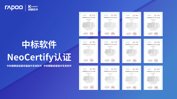 人、工具,是决定生产力效率的关键因素,国产芯片操作系统的崛起,势所趋,不可逆。雷柏科技商务办公产品与国产芯片操作系统共同发力,本土优势,助力新时代的生产力工具。 聚焦国产化信创环境,雷柏科技旗下办公外设产品(无线键鼠套装、无线键盘、无线鼠标、有线键鼠套装、有线键盘、有线鼠标)目前已完成与银河麒麟、中标麒麟、统信软件桌面类、服务器类操作系统的兼容认证工作,进一步为用户提供更稳定可靠的运行操作,全面支持国产芯片操作系统。 立足自主创新,积极支持国产适配。在自主创新领域,雷柏科技立足扎实的解决无线技术刚需价值,以2.4G无线技术为核心展开无线外设产品体系的构建,完成2.4Ghz在外设行业的应用与推广后,又于行业发展前端研发并推出更具稳定与抗干扰性的5Ghz技术与产品。凭借雄厚的产品技术实力,与各大国产化系统公司合作,深入布局行业市场,这也是雷柏科技积极响应国家“自主可控、安全可信、高效可用”的信息安全战略的一面。 2022年,加入星闪联盟,布局升级无线技术,实现全局优化与迭代。以产品研发为核心,以市场需求为指引,赋能产品,打造生态,通过共同严格测试,雷柏科技办公外设产品完成麒麟软件NeoCertify认证、中标软件NeoCertify认证、统信软件产品互认证明。桌面类、服务器类等操作系统整体运行稳定,达到通用兼容性要求及性能、可靠性要求,满足用户的关键性应用需求。 银河麒麟高级服务器操作系统(飞腾版)V10、银河麒麟高级服务器操作系统(鲲鹏版)V10、银河麒麟高级服务器操作系统(海光版)V10、银河麒麟高级服务器操作系统(龙芯版)V10、银河麒麟高级服务器操作系统(兆芯版)V10、银河麒麟高级服务器操作系统(AMD64版)V10、银河麒麟高级服务器操作系统(海思麒麟版)V10;银河麒麟桌面操作系统(飞腾版)V10、银河麒麟桌面操作系统(鲲鹏版)V10、银河麒麟桌面操作系统(海光版)V10、银河麒麟桌面操作系统(龙芯版)V10、银河麒麟桌面操作系统(兆芯版)V10、银河麒麟桌面操作系统(AMD64版)V10、银河麒麟桌面操作系统(海思麒麟版)V10。 中标麒麟高级服务器操作系统软件(海光版)V7.0、中标麒麟高级服务器操作系统软件(兆芯版)V7.0、中标麒麟高级服务器操作系统软件(X86-64版)V7.0、中标麒麟高级服务器操作系统软件(ARM64版)V7.0、中标麒麟高级服务器操作系统软件(龙芯64版)V7.0;中标麒麟桌面操作系统软件(海光版)V7.0、中标麒麟桌面操作系统软件(兆芯版)V7.0、中标麒麟桌面操作系统软件(ARM64版)V7.0、中标麒麟桌面操作系统软件(龙芯64版)V7.0。 统信服务器操作系统V20,兼容CPU平台:海光5000系列,KH-30000系列,KH20000系列,ZX-C+系列,飞腾FT-2000+/64,腾云S2500,鲲鹏916,鲲鹏920,龙芯3B3000,龙芯3B4000,龙芯3B5000;统信桌面操作系统V20,兼容CPU平台:海光3000系列,龙芯3A3000,龙芯3A4000,龙芯3A5000,ZX-C+系列处理器,ZX-C系列处理器,KX-5000系列处理器,KX-6000系列处理器,飞腾FT-2000,腾锐D2000,鲲鹏920,麒麟9006C,麒麟990,麒麟CVE300。 国产芯片操作系统(桌面类、服务器类)的认证加持,代表着雷柏科技办公外设产品已充分适应5G时代需求,实现对多种终端类型资产的适配,具备实现不同用户的普适性和兼容性需求的能力。 规模化、通用性、行业生态,向多元化、多方协同的场景需求迈进,雷柏科技商务办公产品,助力智能经济时代,自主创新。 |