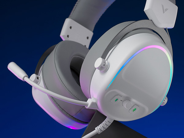 雷柏VH650星辰白作为VH650系列的全新配色,高效的性能给玩家带来叱咤四方的愉快体验,虚拟7.1声道的音效,50mm发声单元,一键开关炫酷幻彩RGB背光系统。灿烂星辰从此诞生。 耳机可通过驱动软件开启虚拟7.1声道声效,加上单张成型的50mm膜片发声单元,两者相辅相成,提供富足的功率和瞬态爆发力,解析复杂的战争游戏音效,营造出真实的环境音层次感,在进行游戏时犹如身临其境。搭配高灵敏全指向降噪麦克风,可360°自由调节,有效抑制环境噪音,嘈杂环境也能和队友顺畅沟通,多功能的耳壳操控设计,集成音量调节、麦克风开关、背光开关三种功能,伸手即控,方便好找,使得游戏中胜算更上一层楼。 无光不电竞,耳罩处配有环状RGB灯带,潮色涌动,点缀出电竞色彩。配合着星辰白的配色,灰白相间,凸显大气优雅,撞出星辰之间的激情澎湃。 金属可伸缩单头梁,韩范头戴设计,可靠耐用,两侧可伸缩调节长度,适应不同头型大小。头梁顶部采用约2cm的厚高密度耐水解皮质海绵,防水耐汗透气,减少佩戴时的压迫感。配合可智能左右调节大尺寸柔软双耳罩,触感柔软细腻的加厚耐水解皮质海绵,全包耳式的包裹效果,有效降低环境噪音的同时,佩戴持久游戏亦能舒适自如。正是这种细节上的体贴设计,助力玩家游戏中专心致志,全力拿下这一局! |