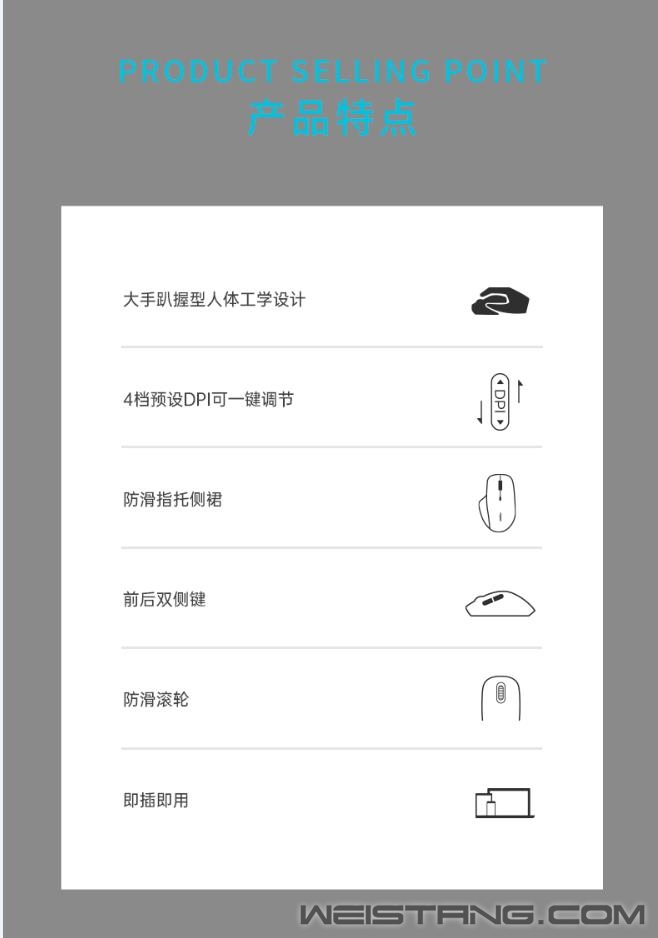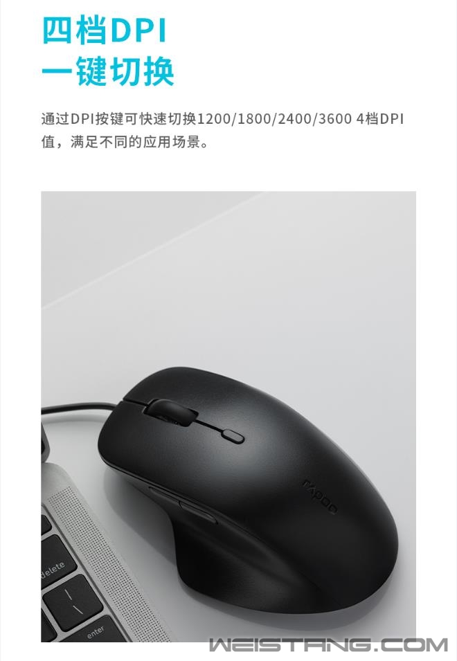 近日,国产外设领军品牌,实力大厂上市企业——Rapoo雷柏,推出了N500有线光学鼠标,大手趴握型人体工学设计,4档可调节的DPI,防滑的指托侧裙以及前后双侧键,那它到底有什么样的魅力呢,我们一起来了解下。 N500采用了大手趴握型人体工学设计,圆润的上盖弧线流线的外形,使手掌与鼠标自然贴合,饱满舒适,操作更显自如。 上盖采用类肤磨砂的工艺,质感细腻,防滑防汗,手感舒适。左右侧裙采用类肤磨砂工艺,防滑防汗,前后双侧键,方便快捷。内凹左侧面、宽大的左侧翼,为大拇指提供良好承托,给用户一个更稳固的操控。 N500采用可调节的光学引擎,通过DPI按键一键快速切换1200/1800/2400/3600 4档的DPI值,满足用户在不同大小屏幕/不同应用的操作。 鼠标滚轮采用防滑设计,滑动顺畅,无论工作学习,都能轻松应对,快速滚动时也能紧紧贴合手指。 N500采用USB连接方式,适配市面上大部分操作系统,即插即用,省事省心。 |