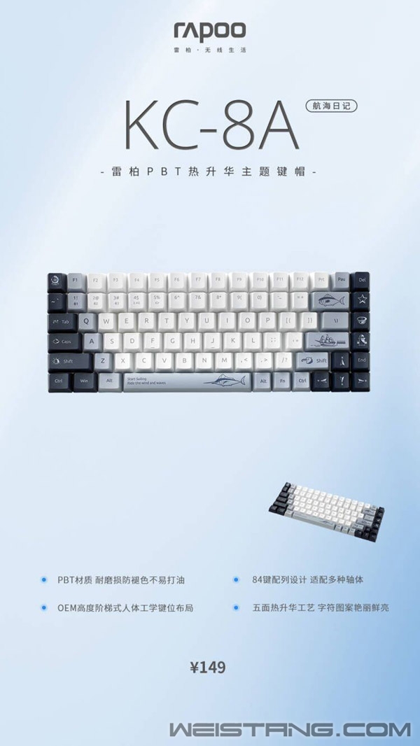 个性键帽,可以是情绪的解压阀,也可以是意识形态的表达。 即使身处都市钢筋水泥建筑之中,被有限的空间圈住时,思绪也不该放弃对有趣事物的追逐。雷柏KC-8A主题键帽在个性化这道命题中,谱写出喵萌假期&航海日记两大主题答卷。融合场景、84键、PBT、热升华,手感,兼容多轴体,一切灵感巧思被化作有灵魂、有态度的个性键帽,照进我们不大不小的桌面空间中。 作为个性化风格的延伸,是碰撞与融合。KC-8A主题键帽采用84键配列设计,可应用于市面上大部分75%配列键盘。五面热升华工艺的PBT键帽材质,使其拥有更耐磨损耐高温的优点,能够维持键帽字符图案的颜色鲜亮度,远离字符褪色磨损、打油的困扰。 除了在材质上的优化,KC-8A主题键帽在舒适度与适配度上也增加了更多思考与可能性。把为用户提供更惬意舒适、更自由灵活的手感体验为宗旨,采用了更符合人体工学设计的OEM高度阶梯式,适配雷柏自主机械轴、佳达隆、凯华、TTC正牌、Cherry MX轴等十字轴体,大键程的两边还支持十字卫星轴。既满足主题风格特性,同时兼具舒适度与实用性。亦如KC-8A主题键帽与雷柏V700-8A多模式无线机械键盘间所产生的有趣联动,是以另一种轻快的机械触感去体验关于小喵萌的假期、读取独家航海日记。 不同媒介、不同环境、不同创作者,主题键帽成为职场人的风格代名词。从「舒适」的产品体验到「个性化定制」,雷柏KC-8A主题键帽以人文价值为引领、以主题个性为呈现、以创新科技为内核与用户进行情感连接,打造贴合当代职场人新的生活方式,满足多场合需求的个性化桌面布局,为用户生活注入更多活力。 |