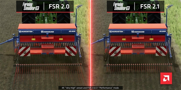 3月份,AMD发布了新一代超分辨率技术FSR 2.0,升级时间算法,画质、性能都有了质的飞跃,而且无需特定硬件单元加速支持,可以跨平台支持友商显卡和主机平台,并且开源开放。 现在,升级版的FSR 2.1来了! FSR 2.1最大的变化就是通过各方面的调整,进一步提升画质,大大减少鬼影、闪烁等出现的几率,这些都是时间缩放算法常见的问题。 《农场模拟器22》在更新1.7.1版补丁后,已经可以开启FSR 2.1。 AMD官方也放出了一组对比图,来自4K超高画质、FSR行模式,可见在FSR 2.1下残影已经完全消失了。 FSR 2.0 FSR 2.1 另外,FSR 2.1还将部分缩放输出质量从半精度计算改为全精度,可以改善画面的整体色彩范围和时间稳定性。 此外还有大量的Bug修复,涉及动态纹理、火花和烟雾粒子。 FSR 2.0已经适配支持20款游戏,还有25款正在路上,它们也都可以轻松更新支持FSR 2.1,因为核心API并未变化,AMD还为虚幻引擎4.26、4.27、5.0提供了相应的更新插件。 由于已经开源,FSR 2.0/2.1还可以轻松植入其他支持DLSS 2.0的游戏和模拟器。 |