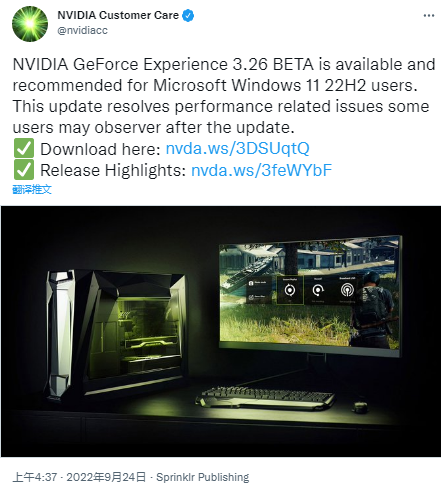 之前一些N卡用户在安装Windows 11 22H2更新后遇到的性能衰退问题,除了导致某些系统的游戏帧率暴跌,还有一些人抱怨称电脑变得容易蓝屏死机(BSOD)。 现在,NVIDIA的一位发言人证实,首发版本的Windows 11 22H2系统,或对部分GeForce显卡驱动造成严重的影响。 为了解决这个问题,现在官方已经放出了修复的程序,该公司在更新日志中写道(下载:点击): 修复《农场模拟器 22》、《赛博朋克 2077》、《PUBG》和《F1 2021》等游戏内的覆盖问题。 修复桌面通知奖励的问题。 修复 Alt+F12 热键在其它应用程序中无法使用的问题。 修复系统重启、或启动后性能覆盖重置为 Basic 的问题。 修复自我更新后,系统自动重启的问题。 最后,对于不急着尝鲜的朋友,最好还请将Windows 11 22H2等大规模更新至少推迟一个月,以避免因测试不够全面而导致计算机陷入一系列奇怪的bug。 还要注意的是,NV之所以这么着急的放出修复,主要还是因为自家的RTX 40系列显卡,因为也是适用的,而4090将会在10月12日于国内上市,价格为12999元。 |