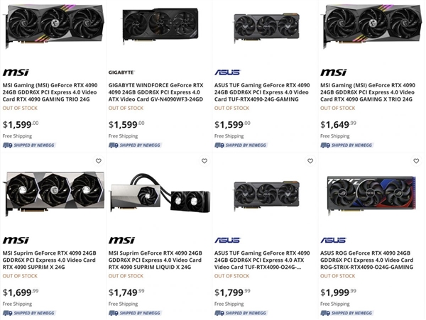 NVIDIA已经发布的三张RTX 40系显卡中,最先上市的会是RTX 4090,日子定在10月12号。 尽管NVIDIA给出的FE公版建议零售价是1599美元(国行12999元),但三方的非公版则并不一定严格按照这一数字销售,而是丰俭由人。 在国外电商平台,部分非公版RTX 4090产品已经提前上架,部分产品的确按照1599美元销售,可也有另类的存在,比如“败家之眼”的Strix,直接给到2000美元,贵了25%。 当然,非公版产品在散热堆料、灯效、材质等方面会有一些不同,价格的确没法完全统一。遗憾的是,暂时还没有看到低于建议零售价的款式。 就当下行情来看,挖矿凉凉、RTX 30系库存高企、加之Intel Arc显卡和AMD RX 7000系列显卡也将陆续推出,首批原价甚至溢价入手RTX 4090,的确需要一些信仰和实力。 |