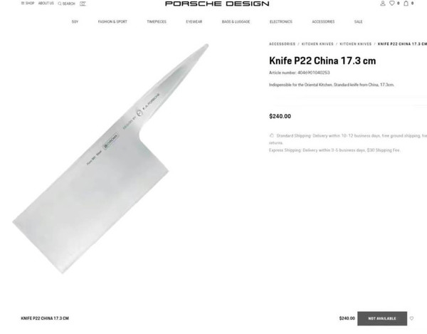 对于保时捷,我们大多的印象集中在汽车相关的领域。根据官方的数据信息,在2021年,保时捷的全球汽车销量超过30万台。 作为一个豪车品牌,如此成绩可以说是非常优秀的了。不过最近,保时捷设计在官网上上架了一款菜刀,还是中国式的。 近日,保时捷设计在自家的官方网站上上架了一款一体式中国菜刀。值得一提的是,从相关图片上来看,或许是出于环保的目的,这把菜刀连木质刀柄都没有,使用起来想必也会比较麻烦。 外观方面,虽然是保时捷设计官网的产品,但是似乎并没有经过什么特殊的设计,整体是普通中国菜刀的方形,只是在较为靠近刀背的地方有一排铭文。 目前,这款产品在海外的售价为240美元,大约相当于1720元人民币。 不得不说,作为一款菜刀,如此价格并不算便宜。但是如果将其看做是保时捷产品的话,似乎又值得一买。 此外,保时捷设计相关公司的工作人员还表示,这款菜刀可以拍蒜,具体的使用建议需要咨询当地的销售公司。目前,这款保时捷菜刀依然能够在德国和瑞士等地方购买。 |