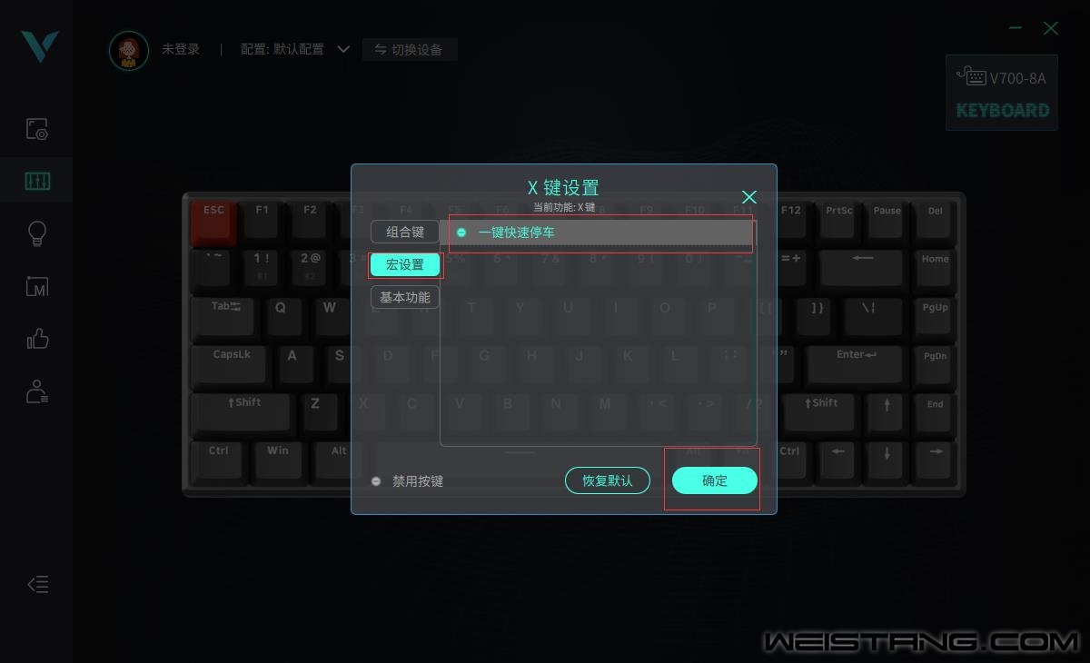 《绝地求生》是一款开放世界策略射击游戏,采用虚幻4的引擎制作,而在游戏中,车是一个非常好用的交通工具,但是车速过快会导致,翻车、撞树等这些对玩家造成血量上的伤害,甚至是死亡,所以快速停车技巧就显得非常重要了。今天笔者使用雷柏V700-8A背光游戏机械键盘强大的宏定义玩出一键快速停车的精妙之处。 宏怎么设置去完成同一方向奔跑查看周围视角的动作,需要同时按下默认的space(手刹),F键(交互),这样就能在高速开车的时候及时刹车,以免车速过快导致意外发生,造成伤害。下面笔者为大家讲解如何通过雷柏V700-8A的宏定义一键快速停车。 步骤一:打开驱动,选中雷柏V700-8A的宏编辑器,我们以“空格以及F”为例,设置一个宏命令,在弹出的页面中点击左下角的加按键,并将“新建宏”重命名为“一键快速停车”。 步骤二:将“一键快速停车”的一系列操作进行录制,点击界面开始录制宏,并依次输入空格以及F,点击“停止录制”,即完成了一组宏命令设置。 步骤三:设置好一键快速停车的一系列动作之后,回到按键设置中,以X键为例,点击X键,选择“宏设置”,选择刚才设置好的“一键快速停车”命令,点击“确定”后,点击“应用”即可使用。 步骤四:设置完成后,就可以开启你的快速停车模式,只要经过合理的设置,雷柏V700-8A让你在游戏中用及时的刹车,减少不必要的意外伤害。 领军国产外设品牌,实力大厂上市企业Rapoo雷柏发布的V700-8A多模式有线无线背光游戏机械键盘。拥有机甲紫,孤勇者,无人区三款配色,75%配列84键的紧凑型键位布局,蓝牙5.0、蓝牙3.0、无线2.4G和有线四种模式,最多支持5台设备连接切换,雷柏自主黑青茶红游戏轴体,实现有线全键无冲,无线任意6键无冲,内置4000mAh的锂电池,支持边充边使用,全键可编程,超强的驱动软件也让键盘的可玩性获得更大的提高,售价仅为299元,相信它一定会成为你首选的游戏利器,给你畅快的游戏操作体验。 |