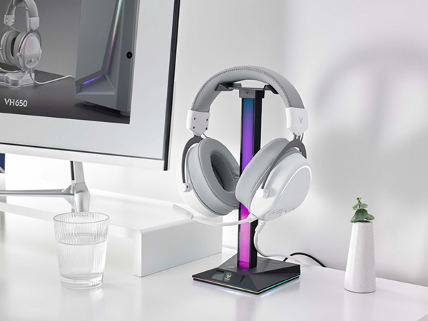 领军国产外设品牌,实力大厂上市企业Rapoo雷柏推出VH10RGB律动幻彩背光游戏耳机支架(多接口型),带有RGB拾音氛围灯,10种幻彩RGB律动,17种底座RGB魔幻灯效;三种扩展接口便利设备连接,建立与桌面场景氛围的精神桥梁。 VH10RGB搭配幻彩RGB声控节奏灯,可根据周围的声音律动,奏出10种幻彩RGB的华丽篇章。底座LOGO处也可切换17种RGB的魔幻灯效,玩出不一样的个性篇章。 支架底座配备了一个USB2.0/USB-C/以及3.5mm的hub接口,三种不同的扩展接口给用户提供不同的设备连接方式,支持数据传输,音频传输等,方便连接使用。 即插即用的幻彩耳机支架,无需软件即可开启绚烂的RGB灯光,还可通过扩展接口,开启设备与电脑的无缝连接,满足不同的场景应用。支架还可收纳头戴式耳机,让您的桌面更精简美观。支架底部配备了四块防滑橡胶底座,可以有效防止使用过程中发生移位,保护支架和桌面。 |