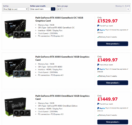 被大家拼命吐槽后,NVIDIA放弃了RTX 4080 12GB,但是后续会以什么形式重出江湖,还有待观察。 对于那些关注RTX4080 16GB的玩家来说,其已经做好了上市的准备。 从目前最新曝光的细节看,RTX4080 16GB将于11月16日发售,其在英国零售商的报价显示,售价从1449.97英镑(12212元)到1529.97英镑(12885元)不等。 不得不说,这个价格还是非常贵的,有网友甚至吐槽,有着价格为啥不买RTX 4090? RTX 4080 16GB内建9728个CUDA,基于AD103核心,匹配的显存位宽是256bit,热设计功耗320W。而RTX 4080 12GB则内建7680个CUDA,匹配匪夷所思的192bit位宽,热设计功耗285W。 |