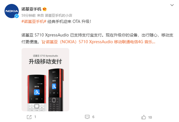 今年早些时候,诺基亚发布了一款名为诺基亚5710 XpressAudio的手机,它凭借极为独特的内置TWS无线耳机设计,吸引了不少人的关注。 今天,诺基亚官方宣布,将为5710 XpressAudio推送OTA升级,增加支付宝移动支付功能。 不过,官方并未详细演示支付宝在这款手机上的具体使用方式,是能够用摄像头扫码付款,还是只能展示付款码,换需要等正式推送才能知道。 不过,无论是哪种方式,该功能的加入都大大提升了5710 XpressAudio作为“备用机”的实用性。 据悉,5710 XpressAudio配备了一块2.4英寸彩色屏,支持4G全网通和双卡双待和VoLTE高清语音通话。 同时,该机还内置双立体声扬声器和专属音乐操控键,并预装喜马拉雅、咪咕音乐等软件,内置专业音乐播放器,支持最大32GB内存拓展。 |