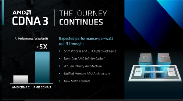 AMD APU在桌面上赢兴阑珊,在笔记本上倒是全线普及,在数据中心更是接连跨越。 AMD在今年中已经公开宣布,将于明年推出下一代加速计算卡“Instinct MI300”,除了工艺升级5nm,架构升级CDNA3,还会首次融入CPU核心,基于最新的Zen4架构。 此外,它还会带来Infinity Fabric高速总线、nfinity Cache无限缓存、HBM3高带宽内存等,通过3D小芯片立体封装合为一体。 AMD CTO兼技术与工程业务执行副总裁Mark Papermaster在接受采访时透露,MI300计算卡已经在AMD实验室内跑起来了,将在明年按期发布。 他表示,MI300是一个真正的数据中心APU,融合了CPU加速、GPU加速,通过Infinity架构共享完全一致性的高带宽内存。 美国劳伦斯利弗莫尔国家实验室将采用MI300计算卡,打造新一代超级计算机“El Capitan”(加州酋长岩),目标峰值性能2EFlops(每秒200亿亿次计算),持续性能超过1EFlops(每秒100亿亿次计算),整机功耗不到40兆瓦。 新系统预计2023年即可完成安装,2024年上线运行,2030年退役。 AMD当前的计算卡MI250X已经用于世界第一超算Frontier,搭档AMD第三代霄龙 7A53 64核心理器,峰值性能1.69EFlops,最大性能1.10EFlops,功耗21.1兆瓦。 |