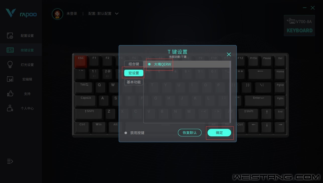 深渊巨口(大嘴)作为英雄联盟里的后期英雄,发育起来无论是AD还是AP都非常强势,是团队后期的保障。新版本的到来,大嘴的技能有所变化,其中改动最大的是W技能,100%的攻速加成让大嘴成为一个少有的可以站撸的ADC。此外,英雄以及天赋改动非常大,笔者将使用雷柏V700-8A多模有线无线背光游戏机械键盘宏定义功能教你玩出一秒五喷的移动大炮。 首先我们先看看新赛季大嘴推荐的符文天赋: 点出致命节奏搭配W技能来突破攻速限制,达到一秒五喷,启迪里的闪现网和未来市场让大嘴能有更好的输出空间和发展速率。 线上玩法:熟悉了新赛季大嘴的天赋和符文之后,我们再来看看他的玩法,新版本更新后,对于大嘴的变化相较其他英雄来说变化不大,主要还是要保证前期的发育,线上消耗QEW对点,6级之后R消耗,新版本R技能活体大炮基础伤害下降,不再对英雄造成额外伤害,对25-50%血量的英雄目标造成双倍伤害,对25%以下血量英雄造成3倍伤害。 团战玩法:团战的时候一定要注意走位,不要被敌方的切入型刺客秒掉,远距离用R先消耗,由于大嘴没有位移技能,团战时很容易被切,因此最好是等闪现在手的时候开团,利用E技能减速,走A,秒掉对面切入的刺客,大嘴W技能的高攻速对敌方前排威胁很大,团战开始之前可先消耗对面前排。 熟悉大嘴的基本玩法之后,下面就为大家讲解如何通过雷柏V700-8A一键玩大嘴。相信许多的玩家有时候会因为手速不够快而没法完成复杂的连招,我们可以通过宏定义的设置, 将完美解决您的手速问题,让你一键就能发出大嘴的QERW连招,让你在游戏中快人一步,离胜利更进一步。 步骤一:我们以“大嘴”为例,设置一个宏命令。点击“宏编辑”,在弹出的页面中点击左下角的加按键,并将“新建宏”重命名为“大嘴QERW”。 步骤二:大嘴基本连招——“QERW”,这一系列动作命令设置为一个宏命令。点击界面右侧的“开始录制”,依次输入QERW,再点击保存,点击“停止录制”。即完成了一组宏命令设置。 步骤三:设置好大嘴连招之后,回到按键设置界面,以T键为例,点在设置页面,点击宏设置,选择刚才设置好的“大嘴QERW”命令,点击“确定”后,进行“应用”,即可使用。 设置完成后,便可在《英雄联盟》中,可以通过点击V700-8A的T键来一键使用大嘴的连招进行线上对拼了,线上单杀、留人、逃生只需通过一个键,尽享一秒五喷的输出快感。 领军国产外设品牌,实力大厂上市企业Rapoo雷柏发布的V700-8A多模式有线无线背光游戏机械键盘。拥有机甲紫,孤勇者,无人区三款配色,75%配列84键的紧凑型键位布局,蓝牙5.0、蓝牙3.0、无线2.4G和有线四种模式,最多支持5台设备连接切换,雷柏自主黑青茶红游戏轴体,实现有线全键无冲,无线任意6键无冲,内置4000mAh的锂电池,支持边充边使用,全键可编程,超强的驱动软件也让键盘的可玩性获得更大的提高,售价仅为299元,相信它一定会成为你首选的游戏利器,给你畅快的游戏操作体验。 |