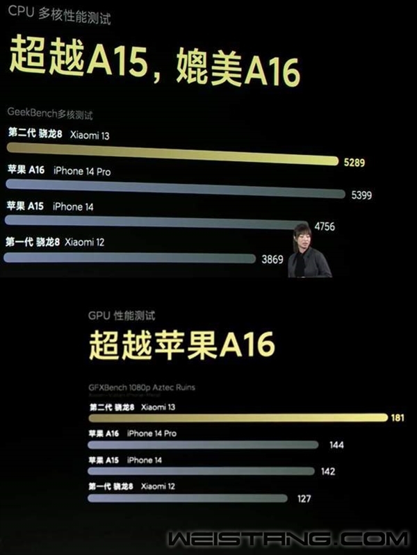 高通第三代骁龙8(骁龙8 Gen3)预计最快三季度末就会正式发布。 在骁龙8+和骁龙8 Gen2取得不俗反响后,第三代骁龙8会带来怎样的产品力自然受到关注。 快科技4月9日讯,博主数码闲聊站分享称,下代安卓阵营GPU跑分提升50%,实际性能提升也不小,他调侃“苹果A17能不能弯道超车啊”。 实际上,按照小米13发布会上的说法,骁龙8 Gen2 CPU媲美苹果A16,GPU更是实现大幅超越,这就是所谓“弯道超车”的由来。 此前爆料称,骁龙8 Gen3的GPU将从Adreno 740升级到Adreno 750,频率770MHz~1GHz。 CPU方面,骁龙8 Gen3内部型号SM8650,代号Lanai,CPU架构极为创新,采用“1+2+3+2”的8核设计,或首次采用纯64位设计。 |