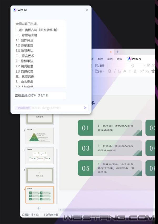 据金山办公官方公众号,WPS AI上新,携文字、表格、演示、PDF,四大家族成员亮相。 这也是WPS AI继首次亮相轻文档后,迅速进化并再次上新。此次WPS AI将大模型(LLM)能力嵌入四大组件,并支持桌面电脑和移动设备。 文字方面,WPS AI可根据指令,自动生成内容,可理解文意。比如你可以说:“WPS AI,生成一份小红书营销笔记,少女风。”“读完这些资料,帮我写一篇读后感吧。” 在表格中,用户直接向WPS表格提问即可得到结果,比如“商品利润率超过5%的那栏标红”、“手机库存数量,小于30的填上补货提醒”…… 它还支持公式自动生成;某些公式包含复杂的函数关系。现在有了WPS AI的加持,只需告诉WPS表格想要的计算结果,公式便会自动生成。 WPS AI做PPT更绝了,在对话框内输入需求,便可全自动生成一份精美PPT,还支持生成单页、扩写、改写等“微调”能力。它还能帮你自动生成演讲稿,演讲备注立刻呈现。 至于PDF,WPS AI也做到了内容识别与文意理解。PDF文件往往是被“冻结”的图片,在传阅过程中不易编辑修改。WPS Al可实现PDF内容概括、大纲生成、内容问答、问题溯源、翻译等。 金山办公表示,WPS AI正在积极推进合规工作,上线时间以官方正式发布为准。 |