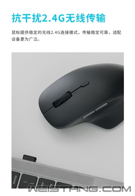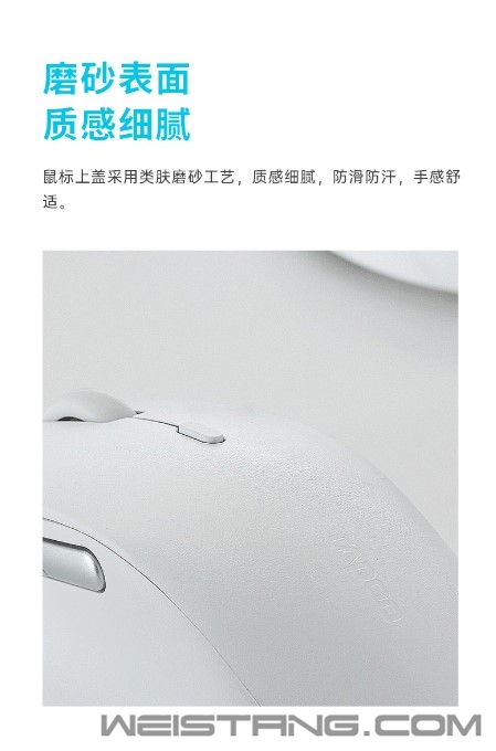 近日,Rapoo雷柏,领军国产外设品牌,实力大厂上市企业,Rapoo雷柏推出了M50 PLUS Silent无线鼠标,2.4G的无线连接,大手趴握型人体工学的设计,轻音按键的设计,DPI大大舒适的提高了办公的便利性。下面,就让我们赶紧体验下这款舒适办公的利器吧。 鼠标采用大手趴握型人体工学的设计,圆润的上盖弧线流线的外形,使手掌与鼠标自然贴合,饱满舒适,操作更显自如。 鼠标上盖采用类肤磨砂的工艺,质感细腻,防滑防汗,手感舒适。 M50 PLUS使用雷柏标志性的2.4G无线传输技术,可提供约10米左右的连接,信号传输高速稳定,抗干扰性更强。 通过DPI按键鼠标可快速切换800/1200/1600/3200四档DPI值,满足不同的应用场景。 鼠标的左右侧裙采用类肤磨砂工艺,防滑防汗,内凹的左侧面、宽大的左侧翼,为大拇指提供良好的承托,给用户一个更稳固的操控。并且滚轮部分采用防滑设计,滑动顺畅,无论工作学习,都能轻松应对。 鼠标采用轻音微动按键,有效减少使用噪音,给予宁静的工作环境,特别时候图书馆、咖啡厅等环境使用。 鼠标采用低功耗芯片+节能省电程序,令M50 PLUS使用1节AA电池便可达到约12个月续航,免去频繁更换电池的麻烦。 |