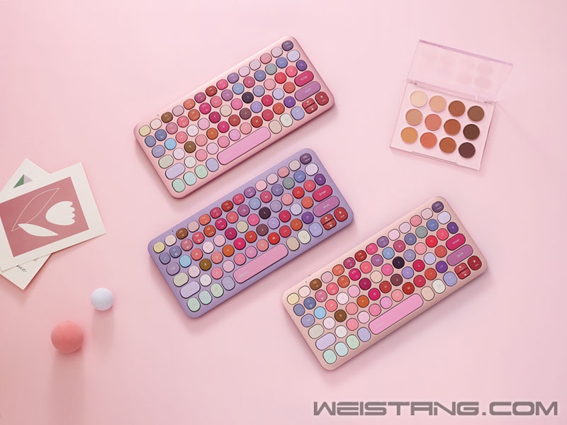 玫瑰金的温柔,和金属铝合金上盖的熠熠生辉,予以人一种知性、清透、优雅的氛围感。经典、耐看的小刀锋造型干净利落,78种不同色号的键帽,满溢梦幻玩趣,玩转出雷柏ralemo Pre 2【蜜粉】mini彩妆盘多模无线键盘不被定义的多面个性,跳脱场景,多一些活力表达。 移动办公 放肆出色 从容与自洽,雷柏ralemo Pre 2【蜜粉】mini彩妆盘的风格核心是要体现轻薄便携带来的闲适和松弛感。明亮丰富的色彩组合、向外散发出毫不掩饰的勃勃生机,为移动办公注入灵动生命力,兼容Windows和Mac OS双系统,蓝牙5.0、3.0、无线2.4G和有线连接模式,最多可连接5台设备,轻松解决繁琐的跨平台、跨终端的办公操作,Windows系统下还可实现12个多媒体快捷键操作,在提升办公效率的同时也为我们节省了更多时间。 率性吸睛 自在随心 出于实用性与风格的双重考虑,ralemo Pre 2【蜜粉】mini彩妆盘的机身至薄为5.2mm,重量约为211g,大小存在感刚刚好,还能起到点亮视觉的效果,让人一看到便能心生愉悦。经典剪刀脚结构的轻盈触感,是张弛有度的关键,每一次敲击时受力均匀,回弹迅速,为指腹减轻压力,赋予自信办公的强大底气。内置800mAh可充锂电池,使用USB-C接口,支持边充边用,约3小时充满电;键盘底部防滑脚垫设计适应于不同材质的桌面,任何场合均能hold住,适配职场办公、移动办公等场景。 传统与新潮的交织与碰撞,平衡出得体与出彩的视觉效果。随性的、优雅的、活力的风格特点,雷柏ralemo Pre 2【蜜粉】mini彩妆盘多模无线键盘都囊括了。百搭实用,灵活切换风格,来适应我们日常办公的不同场合和需求。 |