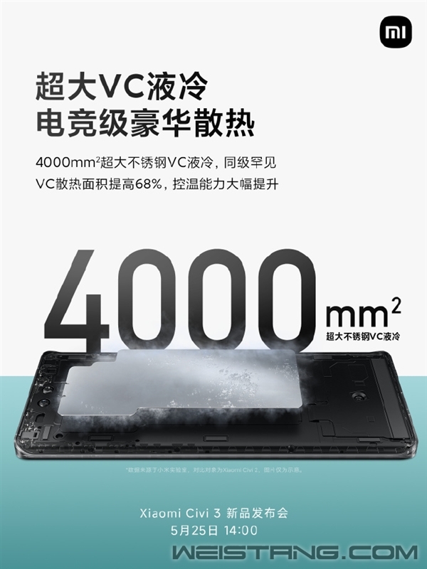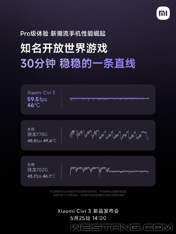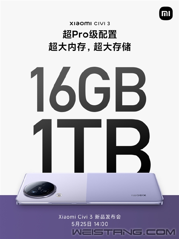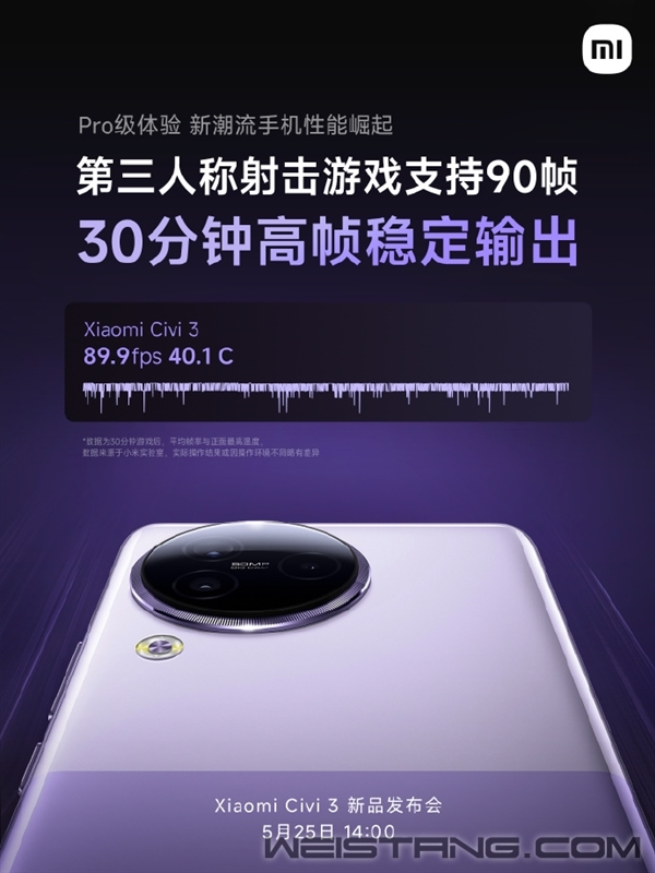 小米Civi 3明天就要正式发布了,经过官方超密集的预热,新机的关键配置已经确定。 与以往Civi系列机型不同的是,小米Civi 3首次增加16GB+1TB超大内存、超大存储的版本,可以说是超Pro级的硬件规格了,同时,小米Civi 3将成为目前潮流手机阵营中唯一的1TB手机。 作为一款主打拍照的手机,小米Civi 3的1TB超大存储将彻底满足用户“拍拍拍”的需求,不用担心拍太多照片导致手机空间不够,告别挑照片的焦虑。 更重要的是,16GB内存将带来更强悍的后台驻留能力,多开应用不卡顿、不杀后台。 据了解,小米Civi 3将首发搭载联发科天玑8200 Ultra处理器,根据小米测试数据,小米Civi 3第三人称射击游戏30分钟,平均帧率为89.9fps,稳定高帧,并且机身正面温度最高只有40.1°C。 进行知名开放世界游戏也毫无压力,30分钟帧率59.5fps,帧率几乎稳成一条直线。 虽然小米没有明说测试的是哪款游戏,但根据小米以往测试判断,两款游戏分别为《和平精英》和《原神》。 为了让游戏性能更稳定,小米Civi 3用上了4000mm2超大不锈钢VC液冷,同级罕见,VC散热面积提供68%,运行大型手游控温更强。 |