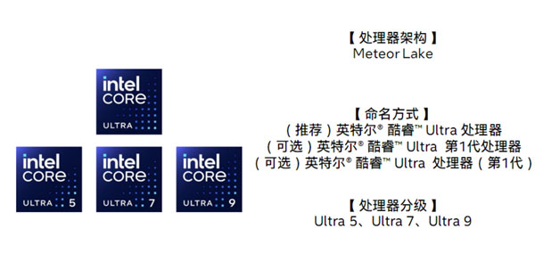 2006年,酷睿(Core)品牌诞生。 2008年,酷睿i(Core i)系列诞生,初期包含i3、i5、i7,后来增加了i9。 十几年来,酷睿几乎已经成为PC处理器的代名词,也是主流大众的首选,一如奔腾、赛扬般经典。 但是,没有什么可以永恒,酷睿的故事要翻开新的篇章了。 快科技6月15日消息,Intel正式宣布酷睿品牌重大升级焕新,拆分为针对旗舰级的“Intel酷睿Ultra”(中文名稍后公布)、针对主流级的“Intel酷睿”,即将推出的Meteor Lake、Raptor Lake Refresh两大处理器会首次引入全新命名方式。 Intel本次品牌焕新的涉及面相当广,包括品牌名称和新视觉标识、代际名称位置、型号分级命名方式,而涉及的标识共有五组,涵盖酷睿、Evo、vPro等品牌及平台。 接下来就给大家详细解读一下这次变化,注意确实有点……凌乱。 酷睿Ultra—— Meteor Lake将会正式命名为“全新Intel酷睿Ultra处理器”,也可以叫做“Intel酷睿Ultra第一代处理器”、“Intel酷睿Ultra处理器(第一代)”,最简单的说法就是“一代酷睿Ultra”。 一代酷睿Ultra从高到低分为酷睿Ultra 9、酷睿Ultra 7、酷睿Ultra 5三个子系列,至少暂时没有酷睿Ultra 3。 酷睿—— Meteor Lake将会引入全新的工艺、架构、技术,与此同时,Intel还会升级现有的Raptor Lake 13代酷睿,但又分为两个不同档次。 一是Raptor Lake U超低功耗系列,命名为“Intel酷睿处理器”,也可以叫做“Intel酷睿第一代处理器”、“Intel酷睿处理器(第一代)”,最简单的说法就是“一代酷睿”(没有任何后缀)。 它也分为三个级别,从高到低分别是酷睿7、酷睿5、酷睿3,注意没有酷睿9。 酷睿i—— 那么,经典的酷睿i是不是就彻底取消了?非也。 这就是Raptor Lake的另一部分升级,包括HX系列高端移动版、S系列桌面版。 它们将延续现有命名体系,官方标准称呼也是“Intel酷睿处理器”,或者叫做“Intel酷睿第14代处理器”、“Intel酷睿处理器(第14代)”,最方便的简称自然是“第14代酷睿”。 14代酷睿沿用与11/12/13代酷睿相同的标识,并继续划分为酷睿i9、酷睿i7、酷睿i5、酷睿i3等四个子系列。 至于为什么同样是Raptor Lake Refresh升级版,U系列叫一代酷睿,HX/S系列叫14代酷睿? Intel的解释是:“这些产品发布的时间不同,并且是针对不同用户推出的产品,还将针对性能分为不同级别。” 简单地说:酷睿Ultra属于旗舰级,酷睿i属于发烧级,酷睿属于主流级。 |