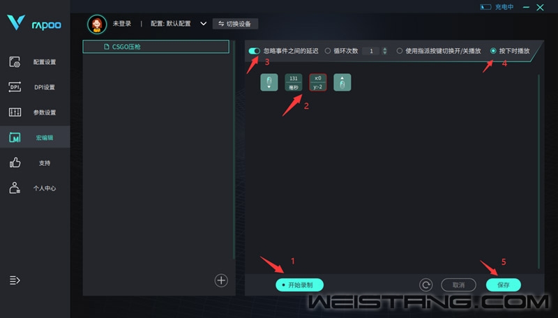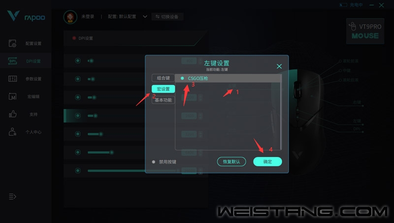 《反恐精英:全球攻势》(简称CS:GO)是一款由VALVE与Hidden Path Entertainment合作开发的第一人称射击游戏。游戏玩家分为反恐精英(CT阵营)与恐怖份子(T阵营)两个阵营,双方需在一个地图上进行多回合的战斗,达到地图要求目标或消灭全部敌方则取得胜利。 FPS类游戏,除了玩家操作,对于鼠标的要求也有一定程度,这次我们通过雷柏VT9PRO轻量化双模无线游戏鼠标来应用游戏,中大手型68G轻量化设计,无论抓握还是趴握都能Get,搭载雷柏自研的C+click按键技术、V+无线游戏技术,在稳定性与按键体验性上提供玩家无忧的体验,并支持升级4Khz回报率,搭配原相3395顶配游戏引擎,最高26000DPI,支持7档DPI可调,帮助玩家适配更适合的回报率,指哪打哪,性能拉满的同时让沉浸式体验同步上线。接下来小编将通过驱动宏定义功能,用视频的方式教大家设置开火压枪。 步骤一:我们以“鼠标左键指令”为例,设置一个宏命令。点击“宏编辑器”,在弹出的页面中点击“新建宏”,并将“新建宏”重命名为“CSGO压枪”。 步骤二:点击界面右侧的“开始录制”,点击“保存”。并在指令内插入坐标,设置Y坐标数值即可。打开“忽略事件之间的延迟”“按下时播放”即完成了一组宏命令设置。 步骤三:设置好压枪宏之后,回到主要设置界面,以DPI+键为例,在设置页面,点击基本功能,将DPI+键功能更改为左键。紧接通过设置界面,已左键为例,点击宏设置,将刚才设置好的“CSGO压枪”命令,点击“确定”后,即可使用。 接下来进入实战即可通过鼠标左键,连发开火,自动压枪,保持准星。 详情可见下方视频,具象化了解具体设置教程: |