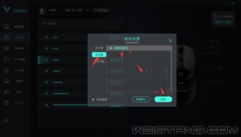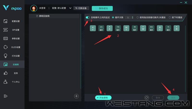 李青是网游《英雄联盟》中的一个近战战士型英雄,拥有很高的机动性和爆发力,通常作为打野位。高能的机动性与技能组合连造多样化,团战先手、破局切C,在打野效率和Gank上都非常优秀。 我们通过雷柏VT9PRO轻量化双模无线游戏鼠标来应用游戏,中大手型68G轻量化设计,无论抓握还是趴握都能Get,搭载雷柏自研的C+click按键技术、V+无线游戏技术,在稳定性与按键体验性上提供玩家无忧的体验,并支持升级4Khz回报率,搭配原相3395顶配游戏引擎,最高26000DPI,支持7档DPI可调,帮助玩家适配更适合的回报率,指哪打哪,性能拉满的同时让沉浸式体验同步上线。接下来小编将通过驱动宏定义功能,用视频的方式教大家设置一键连招。 步骤一:我们以“4WR”为例,设置一个宏命令。点击“宏编辑器”,在弹出的页面中点击“新建宏”,并将“新建宏”重命名为“摸眼回旋踢”。 步骤二:点击界面右侧的“开始录制”,并打开“忽略事件之间的延迟”,点击“保存”。即完成了一组宏命令设置。 步骤三:设置好盲僧插眼回旋踢之后,回到主要设置界面,以前进键为例,在设置页面,点击宏编辑,选择刚才设置好的“插眼回旋踢”命令,点击“确定”后,即可使用。 接下来进入实战即可通过鼠标前进键,一键释放技能连造衔接。 点击下方视频,通过具象化了解宏定义设置教程。 |