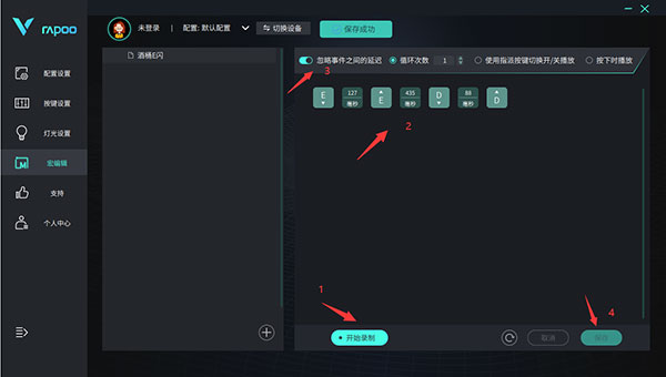 酒桶·古拉加斯,是MOBA竞技网游《英雄联盟》中的英雄角色,定位为战士、法师。在一个队伍里他既能担任坦克的任务也能很好完成AP输出任务,有着强大的中期能力以及强势的对线能力和推线能力。 我们通过雷柏V700-8A多模背光游戏机械键盘,蓝牙5.0/3.0/无线2.4G/有线4种连接方式,让操纵键盘多种方式,75%配列84键布局,满足游戏键位需求的情况下,更便于桌面规整,内置4000毫安时锂电,满电无线持续使用至高约225小时,支持全84键可编程,带板载,持续游戏不断电,科技助力carry秀。接下来小编将通过驱动宏定义功能,通过视频的方式教大家设置组合技能通过键盘一键触发。 步骤一:我们以“E+D”为例,设置一个宏命令。点击“宏编辑器”,在弹出的页面中点击“新建宏”,并将“新建宏”重命名为“酒桶E闪”。 步骤二:点击界面右侧的“开始录制”,并打开“忽略事件之间的延迟”,点击“保存”。即完成了一组宏命令设置。 步骤三:设置好酒桶E闪之后,回到主要设置界面,以T键为例,在设置页面,点击宏编辑,选择刚才设置好的“酒桶E闪”命令,点击“确定”后,即可使用。 接下来进入实战即可通过按键T,一键释放技能连造衔接。 详情可见下方视频,了解操作步骤具体教程: |
