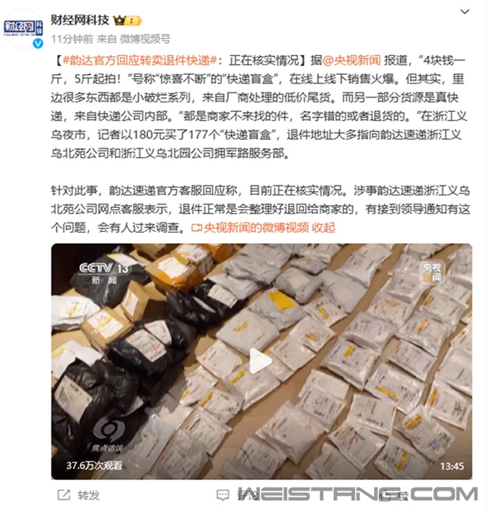胖鸟说:大概在18年6月末的时候,我在美亚买了一把订制的莱泽曼TTi工具钳,按照当时的汇率到手1600左右,那个订制厂发的是UPS,最低档价位的,到我国清关后是走邮政平邮,之后一个月都没有动静了,联系美亚客服大妈,大妈用地道的西部乡村口音告诉我,包裹已经离开美国,应该到达中国了,之后就一直没动静了,然后我就申请退货了,之后给我退款,然后就没然后了,对了,第二个月之后那个订制店从美亚下架了!所以最后包裹哪去了? 据央视新闻报道,日前,《焦点访谈》曝光的“快递盲盒”引起许多网友热议。 报道称,在网购平台,充斥着各种各样的“快递盲盒”,“闲置快递按斤卖,4块钱一斤,5斤起拍”。 销售的方式多为按斤卖或者按件卖,还有一些商家更离谱,直接按吨叫卖,一吨标价6000元到8000元不等。 知情人士表示,“快递盲盒”是商家不来找的件,名字错的或者退货的,这些东西都是内部买去的。 在浙江义乌夜市,央视记者以180元买了177个“快递盲盒”,退件地址大多指向韵达速递浙江义乌北苑公司和浙江义乌北园公司拥军路服务部。 在快递网点退件区,现场有穿着“北苑韵达”字样服装的工作人员正在作业。 工作人员称,退件用车拉走,一块钱一斤卖掉。 据媒体报道,针对此事,韵达速递官方客服回应称,目前正在核实情况。 涉事韵达速递浙江义乌北苑公司网点客服表示,退件正常是会整理好退回给商家的,有接到领导通知有这个问题,会有人过来调查。 |