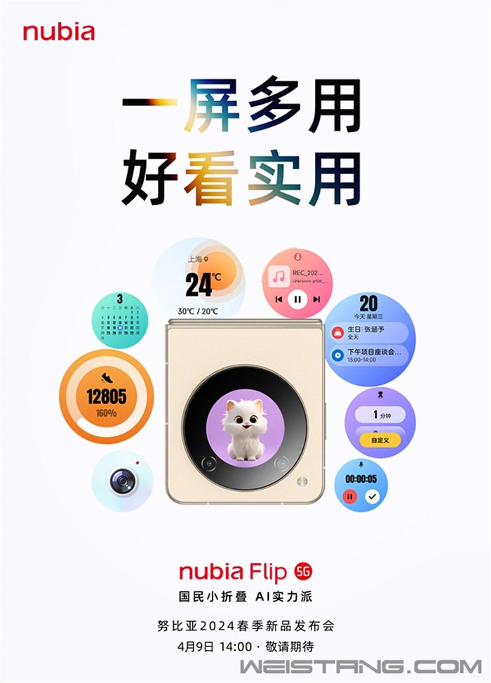 努比亚宣布将于4月9日推出旗下首款小折叠屏手机,名为努比亚Flip。 在外观设计方面,努比亚Flip展开后的厚度仅为7.0mm,这使其成为国产手机中最薄的小折叠手机。 此外,努比亚Flip背部嵌入了一块环形外屏,这个外屏内置了丰富的便捷功能,无需开启主屏,用户即可直接在外屏上查看并操作。 外屏能够显示时间、步数、消息提醒、相机自拍、闹钟、音乐、天气等信息,同时还内置了多款可爱的小宠物,使得外屏更加灵动有趣。 此外,努比亚Flip还注重时尚元素的设计,配合官方设计的小香风手提包壳,使其瞬间成为一个时尚潮流单品,远观之下就像是一个时尚手提包。 目前,努比亚Flip已经在官方商城上架,并且开始接受预约。这款新品不仅刷新了小型折叠手机的轻薄记录,还有可能刷新小型折叠手机的价格记录,非常值得期待。 |