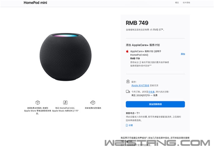 今日,iPhone 16系列“前菜”——苹果全新午夜色HomePod mini开售,价格仍为749元,目前已可在苹果官网下单。 除中国大陆外,全新配色的HomePod mini还将在美国、加拿大、新加坡及其他28个国家和地区的Apple Store零售店发售。 新配色采用100%再生织物打造,通过无接缝透声织网和完全发光的背光触控板构成。 从图片来看,全新午夜色与此前的深空灰色差别不大,仅在色调上略有不同,午夜色带有轻微蓝色调,颜色更深一些。 左:深空灰,右:午夜色 据了解,HomePod mini是HomePod的简配版,外形从“垃圾桶”缩小到“仙人球”,高度仅84.3mm,直径97.9mm,重345g。 HomePod mini采用全频单元和两个低频无源单元,360度发声,支持手机靠近智能感应,可连接iPhone、iPad等设备播放音频。 值得一提的是,MacRumors此前爆料称,在苹果后台代码中发现了尚未发布的“HomeAccessory17,1”设备标识符。 该标识符与现有HomePod使用的“AudioAccessory”相似,推测是带屏幕版HomePod的存在。 另外,9to5Mac还在 tvOS 18 Beta 3代码中发现了全新隐藏触控界面,暗示苹果未来会将其用于带屏幕版HomePod中。 |