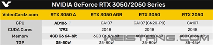 谁能想到,NVIDIA RTX 30系列还在出现卡,而且是名副其实的“亮机卡”,给笔记本用的,估计是被AMD新一代核显给逼的。 这款新卡叫做“RTX 3050 A”,这也是移动版RTX 3050的第三个版本。 最初的RTX 3050采用Ampere架构的GA107核心,配备2048个CUDA核心、128位4GB GDDR6显存,功耗35-80W。 之后的RTX 3050 6GB虽然增加了一半的显存,但是位宽削减到96位,功耗不变,真是刀法精湛。 现在的RTX 3050 A居然升级到了最新的Ada Lovelace架构的入门级核心AD106,CUDA核心减少到1792个,显存进一步砍到64位,容量回到4GB。 频率不详,如果显存能更高一些,倒是能弥补带宽的不足。 好处是功耗更低了,只有35-50W。 这个时候发布如此规格的独显,实在有些不合时宜。 要知道,AMD RDNA3.5架构的新一代核显,理论性能已经和移动版RTX 3050差不多了。 |