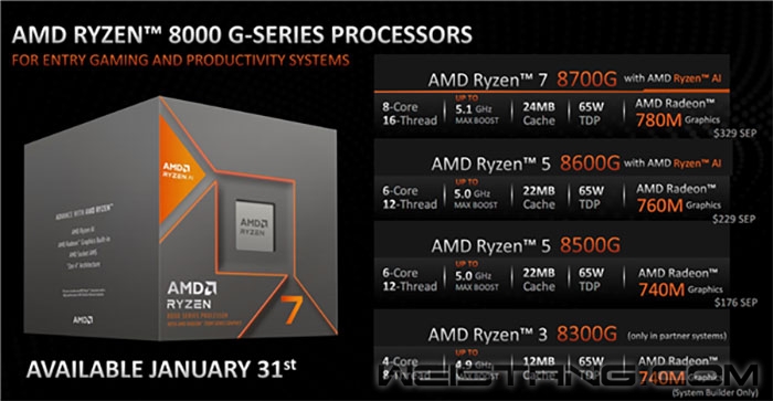 AMD APU处理器已经诞生15年了,一直都是广大人民群众喜闻乐见的优秀产品,拥有不俗的CPU性能、无与伦比的GPU性能、高超的能效、突出的性价比。 其实不仅仅是主流消费者,OEM厂商也非常喜欢APU处理器,毕竟同时将强大的CPU、GPU集成在一颗小小的芯片内,还有强大的性能,还有极小的面积、极低的功耗,对于要求苛刻的OEM整机设计来说无疑是极为友好的。 去年,AMD发布了最新一代的锐龙8000G APU处理器,也是第五代台式机锐龙APU,从工艺到架构,再到技术特性,进行了全方位的升级,可谓焕然一新。 锐龙8000G系列采用了先进的台积电4nm制造工艺,单芯片设计,使用了当时最新的Zen 4 CPU架构、RDNA 3 GPU架构。 同时,锐龙8000G系列也是首款升级支持DDR5内存、PCIe 5.0通道的APU处理器,接口也是新的AM5。 尤为值得一提的是,锐龙8000G系列还是首款台式机AI PC处理器,集成了独立的锐龙AI NPU引擎,再结合CPU、GPU可以离线运行端侧AI应用。 锐龙8000G系列的旗舰是锐龙7 8700G处理器,不但拥有最强悍的规格,而且具备出色的性价比,属于没法让人不爱的那种。 【高能效Zen4架构死死压制竞品】 首先,锐龙8000G系列的CPU性能十分出色,Zen4架构是现在最先进的Zen5上一代的成熟架构,纯看处理器核心架构,理论上是N-1代产品,但其本身足够优秀且非常契合追求稳定的商用台式机, 综合规格和性能表现来看,则完全可以称之为N-0.5代产品了,时至今日依然非常能打,被广泛运用在OEM商用台式机领域 AMD锐龙7 8700G拥有八个Zen4架构的CPU核心,基准频率就有4.2GHz,最高加速更是能够高达5.1GHz,同时还有8MB二级缓存、16MB三级缓存,合计达24MB。 对于主流应用来说,这样的配置是绰绰有余的。 其实,市场上也有类似的N-1代产品,那就是14代酷睿i7 14700处理器,依然活跃在市场上,但由于其采用了大小核配置,很容易出现多任务调度上的问题,从而直接影响处理速度,并不是十分适合主流用户。 更何况,锐龙8000G系列采用了台积电先进的4nm工艺,加上Zen4架构本身的高能效,整颗处理器的热设计功耗只有65W,散热压力基本不存在,只需要简单的风扇就能轻松对付。 比同为N-1架构的酷睿i7 14700的Intel7制程先进至少两到三代(10nm→7nm→5nm→4nm),其表现出来的功耗和温度更低。 其他技术和扩展方面,锐龙8000G系列也不存在短板,比如支持双通道DDR5内存,最大容量256GB; 支持16条PCIe 4.0通道,再加上主板芯片组,可以支持多块SSD,如有需要还可以让独立显卡、SSD都能满血运行; 原生支持两个USB4 40Gbps、两个USB 3.2 Gen2 10Gbps、四个USB 2.0接口,可以灵活满足各种外设需要。 此外,锐龙8000G系列采用的AM5接口,官方承诺会支持到2027+年,也就是说在未来多年的时间里,如有需要随时都可以无缝升级到新平台,无需担心性能不足而更换整机。 【第一款干掉GTX 1650的集显】 当然,AMD APU处理器的一贯突出优势就是无可比拟的GPU集显,在处理器狭小的空间内每一代都有显著提升。 锐龙7 8700G的集显型号为Radeon 780M,升级到了当时最新的RDNA 3架构,和同时代的RX 7000系列显卡完全一致,而且拥有多达12个CU单元,相当于768个流处理器。 另外,锐龙5 8600G处理器集成了6个核心、2800MHz加速频率的Radeon 760M,面对GTX 1650 GDDR5版本也能取得一定的优势。 即便是主流型号锐龙5 8500G集成的Radeon 740M,只有4个核心(256个流处理器),加速频率依然高达2800MHz,也能遥遥领先Intel核显。 更令人惊讶的是,集显加速频率达到了2900MHz,甚至超过了当时的独立显卡,创造了GPU历史上的新高。 【第一款集成NPU AI引擎的桌面处理器】 锐龙8000G系列还开启了另外一个新的时代,那就是代表了首款桌面级AI PC处理器。 AI PC的概念已经提出了两三年,不过确切地说一直都是AI笔记本,而在桌面台式机上,之前一直是空白。 锐龙8000G系列率先在桌面级处理器中集成了独立的AI神经网络处理单元(NPU),打造了专用的锐龙AI引擎,可提供最高16 TOPS的算力,也就是每秒16万亿次。 再加上CPU、GPU,整个处理器拥有了三大引擎,算力合计达到39 TOPS(每秒39万亿次)。 这样一来,锐龙8000G系列就可以实现更好的片上生成式AI性能和推理能力,也能脱离云端和网络,在本地端侧执行一些轻量级的AI工作负载,尤其适合需要持续运行的后台负载。 相比于独立显卡,集显虽然在算力上处于弱势,但好处是可以灵活设定更大容量的共享显存,从而实现效率飞跃,因为AI应用往往是非常吃显存的。 比如在Stable Diffusion等文生图应用中,Radeon 780M就可以设置最多16GB显存,GTX 1650就只有4GB显存,生成效率差异甚至达到了6倍之多。 比如在Windows相机或其他视频会议软件中,系统可以直接调用锐龙AI引擎,识别前景、人物和背景,进行背景虚化、自动取景和眼神交流等操作,显著增强体验,并大大降低功耗。 未来,随着AI应用越来越广泛,优化效率越来越高,锐龙8000G系列这样的AI PC处理器会有更大的发挥空间,大大提升工作和娱乐效率。 【OEM商用台式机的不二之选】 相比于i7-14700之类的同等定位竞品,锐龙8000G系列可以说是全面领先:高能效的Zen4 CPU架构、首次超越GTX 1650独立显卡的集显性能、39 TOPS强大算力的桌面级 PC处理器、丰富的扩展支持…… 就像文章开始时候的阐述,对一颗商用台式机处理器来说,全能比偏科更可贵,锐龙8000G系列已经不是传统意义上的N-1代产品,更堪称N-0.5代产品,因此从装机成本和运营策略来说,非常适合更新节奏相对较慢的品牌机商用台式机系列产