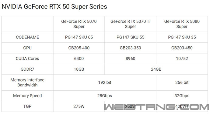 日前有消息称NVIDIA RTX 50 Super系列显卡可能会在2025年底提前推出,不过根据BenchLife的最新消息,今年会推出的概率很低。 主要原因在于,目前NVIDIA的竞争对手尚未推出能够对其现有显卡构成实质性威胁的产品,因此NVIDIA并没有提前发布RTX 50 Super系列的紧迫性。 目前已知的RTX 50 Super系列可能包括RTX 5080、GeForce RTX 5070 Ti和GeForce RTX 5070等三款型号。 该系列的升级重点在于显存,计划将显存规格从2GB GDDR7升级为3GB GDDR7,从而使三款显卡的显存分别从16GB、16GB和12GB提升至24GB、24GB和18GB。 当然,随着显存容量的增加,显卡的TGP功耗也将相应提升。 此前RTX 50 Super系列的相关信息最早于今年6月底曝光,BenchLife透露,截至目前没有任何一家AIC合作伙伴收到NVIDIA关于该系列产品的进一步通知或开案信息。 目前,AIC合作伙伴的重点仍然集中在8月12日即将上市的RTX 5090 D V2,以及美光GDDR7显存的引入工作上。 此外,RTX 5080、RTX 5070 Ti和RTX 5070分别已于1月、2月和3月陆续上市,如果NVIDIA在不到一年的时间内就推出后续产品,这种情况可以说是前所未见。 而且华硕和微星目前仍在计划针对RTX 5080推出新产品,因此NVIDIA在2025年内推出Super系列的可能性不大。 |